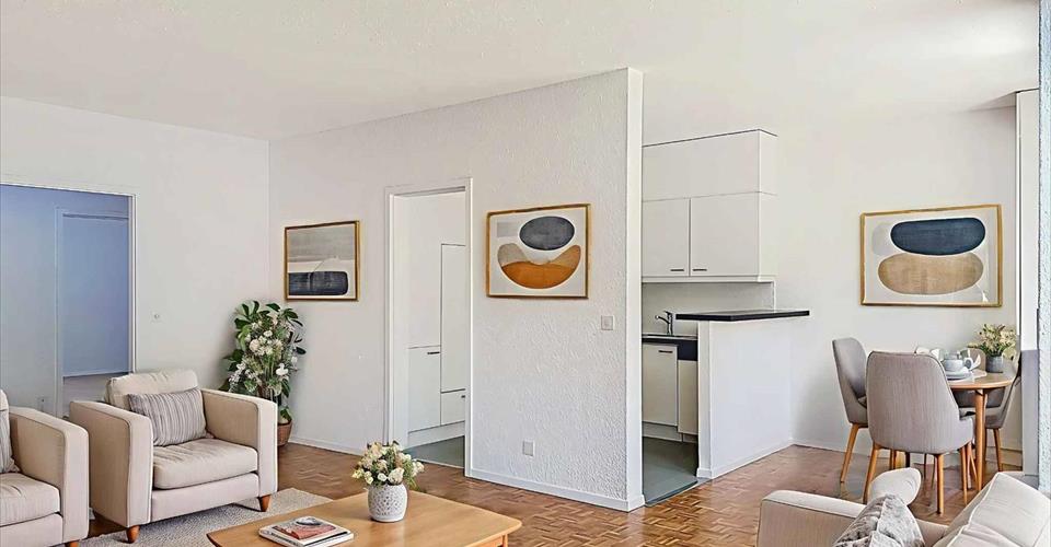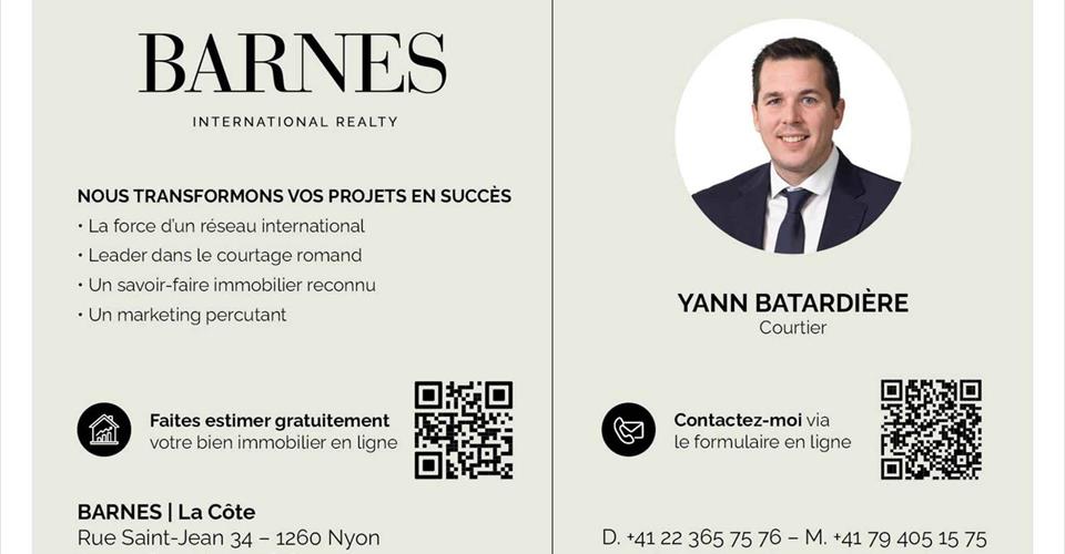 BARNES | La Côte a le plaisir de vous proposer ce très bel appartement de 3.5 pièces. Situé au 1er étage d’un immeuble avec ascenseur, dans un cadre verdoyant et calme, cet appartement bénéficie d’une localisation idéale à proximité immédiate des commerces et de toutes commodités. D’une surface totale d’environ 90 m², il se compose d’un vaste hall d’entrée avec armoire intégrée et WC visiteurs, qui dessert deux espaces distincts : L’espace de vie : Une cuisine équipée ouverte sur un séjour lumineux avec cheminée, offrant un accès direct à un balcon exposé plein Sud, parfait pour profiter des belles journées. L’espace nuit : Deux chambres à coucher confortables ainsi qu’une salle de bains fonctionnelle. Annexes : Une cave spacieuse de 11 m² Une buanderie commune et un local à vélos Une place de parking extérieure (en sus à 15’000.-) Un box fermé intérieur de 16 m² (en sus à 35’000.-) Ce bien allie confort, praticité et qualité de vie dans un environnement recherché.