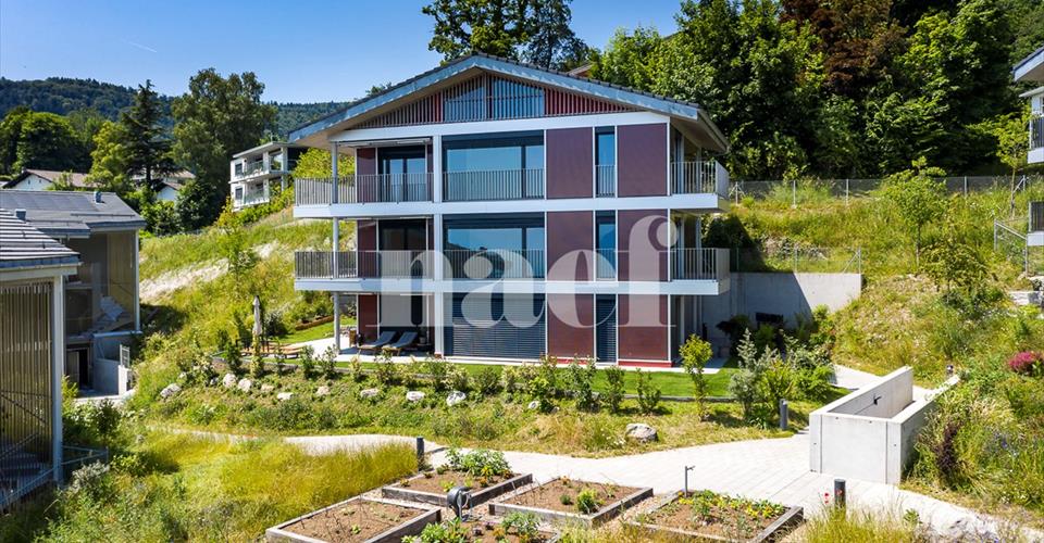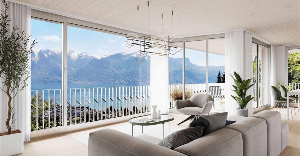 À moins de 10 min de Vevey, superbe appartement neuf de 3.5 pièces au 1er étage, offrant env. 103 m² habitables, deux balcons (24 m² et 5 m²) soit surface de vente pondérée de 117.80 m2. Vue panoramique sur le lac et les montagnes. Exposition plein sud, lumineux grâce à ses grandes baies vitrées. Finitions au gré du preneur. Deux places de parc intérieures (CHF 40’000.-/place) et cave en sus. Situé dans une résidence éco-énergétique label Minergie, avec panneaux solaires, géothermie, potagers communs et façades actives en bois suisse. Environnement calme, verdoyant, proche des écoles et des commodités. Plus d’infos sur : www.les-v-terres.ch