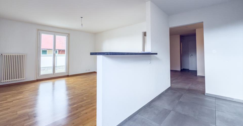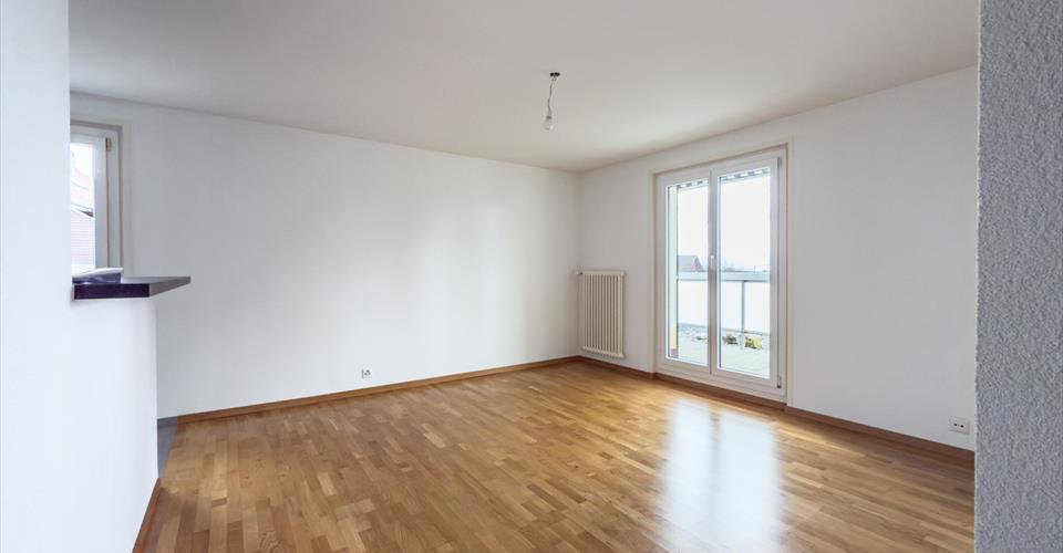 Ce charmant appartement de 3,5 pièces, situé au rez-supérieur d’une copropriété à taille humaine, offre une surface habitable d’environ 77 m². Rénové intégralement en 2023 avec des matériaux de qualité, il bénéficie d’une distribution optimale. Le spacieux séjour donne accès direct à un balcon d’environ 6 m², orienté plein sud, offrant une vue dégagée sur la nature. La cuisine, neuve et entièrement équipée (four, lave-vaisselle, plaques à induction, plan de travail en pierre), s’ouvre sur l’espace de vie. La partie nuit se compose de deux chambres confortables, équipées d’un parquet neuf. Une salle de bain contemporaine ainsi qu’un WC séparé complètent cet espace, assurant un agencement fonctionnel et agréable. Annexes Un box fermé en sus du prix de vente (CHF 40’000.–) Une cave privative