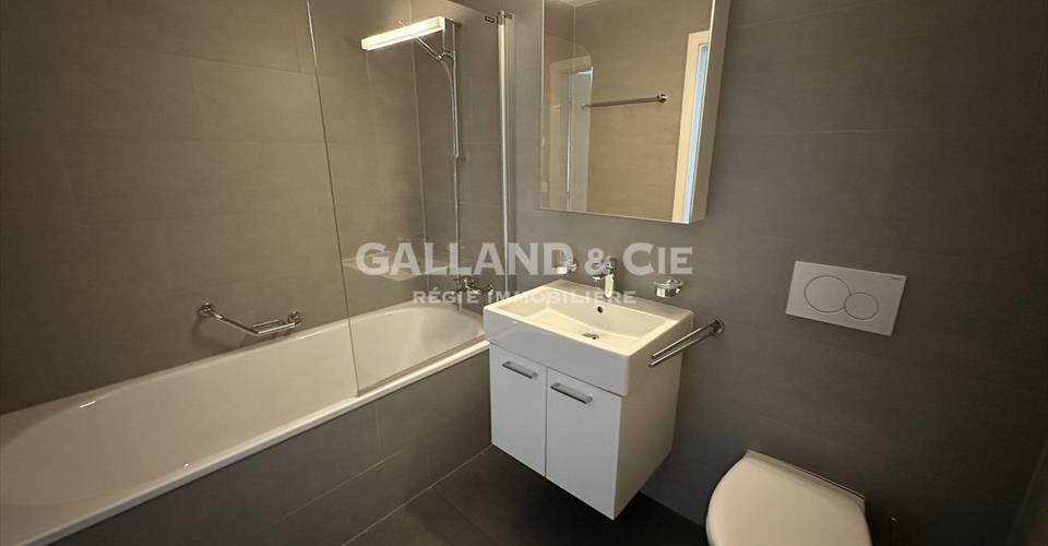 Situation dominante pour ce bel appartement de 3.5 pièces situé dans un immeuble d’architecture moderne, certifié Minergie. Sa surface d’~ 86 m², organisée avec habileté, vous permettra de profiter d’une luminosité naturelle toute la journée. De plus, une spacieuse terrasse-loggia d’~ 21 m² est une véritable pièce supplémentaire durant les beaux jours. Sa typologie : 1 x Espace d’entrée avec armoires encastrées 1 x Séjour avec cuisine ouverte avec bar d’~ 40 m² et accès direct à la loggia Ouest d’~ 21 m² 1 x Chambre d’~ 14 m² 1 x Chambre d’~ 12 m² 1 x Salle de bains avec baignoire, vasque avec meuble et un WC 1 x Salle de douche avec douche, vasque et meuble, WC, lave-linge, sèche-linge 1 x Terrasse-Loggia d’~ 21 m² protégée de vitrage rabattable et de stores à lamelles électriques Une cave de 10 m² complète le bien. L’efficacité de l’enveloppe du bâtiment est en B, son efficacité énergétique globale également et l’évaluation des émissions directes de CO2 en A. 1 place de parc intérieure (en sus du prix). La commune du Mont-sur-Lausanne offre des infrastructures qualitatives scolaires, de transport et commerciales et l’accès autoroutier (Blécherette) est à 4 min en voiture. Autoroute : accès Lausanne-Blécherette à ~ 4 min en voiture Bus : ligne n° 8 des TL (Transports publiques lausannois) à ~ 240 m Disponibilité : de suite ou à convenir