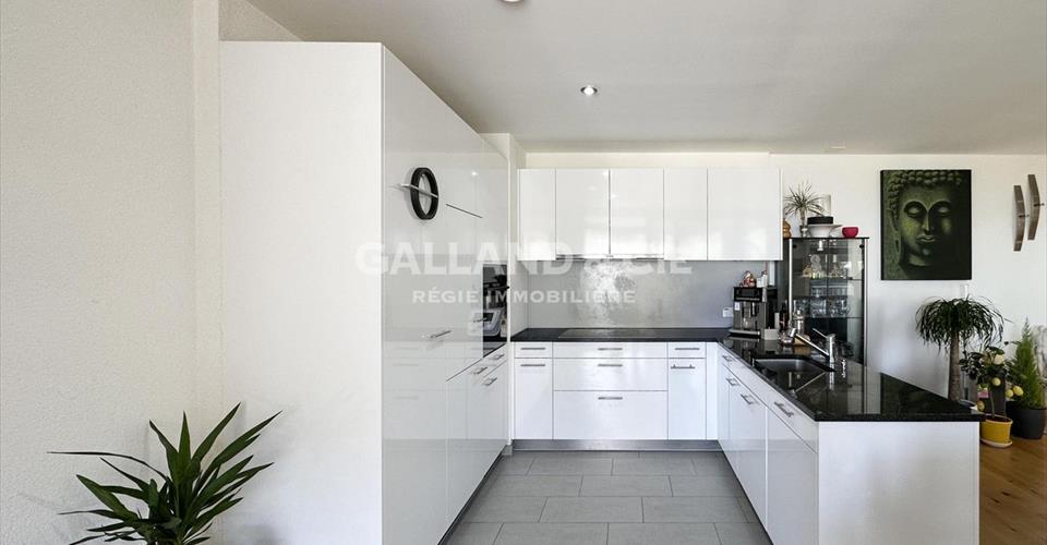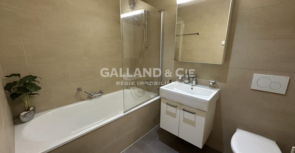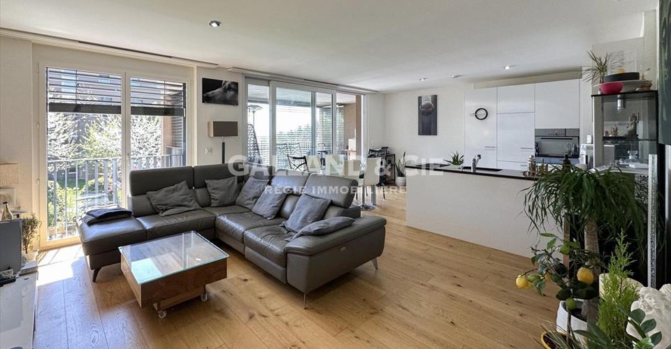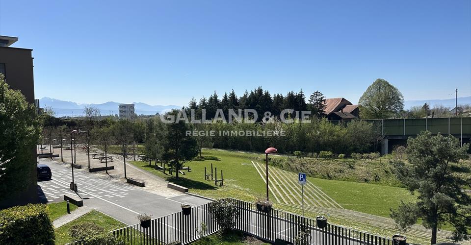 Ce lumineux appartement de 3.5 pièces est situé dans un immeuble à 2 min des portes de Lausanne dans un immeuble Minergie. Sa surface est d’~ 82 m² avec une spacieuse terrasse-loggia d’~ 19 m² orientée Sud. Il comprend : 1 x Espace d’entrée avec armoires encastrées 1 x Séjour avec cuisine ouverte d’~ 35 m² et accès direct à la terrasse-loggia Sud d’~ 19 m² 1 x Chambre d’~ 12 m² 1 x Chambre d’~ 17 m² 1 x Salle de bains avec baignoire, vasque avec meuble et un WC 1 x Salle de douche avec douche, vasque avec meuble, WC, lave-linge, sèche-linge 1 x Terrasse-loggia d’~ 2 m² protégée de vitrage rabattable et de stores à lamelles électriques Une cave d’~ 7.5 m² complète le bien. Une place de parc intérieure (en sus du prix). Ascenseur. L’efficacité de l’enveloppe du bâtiment est en B, de même que son efficacité énergétique globale. La commune du Mont-sur-Lausanne offre des infrastructures qualitatives scolaires, de transport et commerciales et l’accès autoroutier (Blécherette) est à 4 min en voiture. Autoroute : accès Lausanne-Blécherette à ~ 4 min en voiture Bus : ligne n° 8 des TL (Transports publiques lausannois) à ~ 240 m L’appartement est actuellement loué : état locatif annuel brut : CHF 26’760.–.