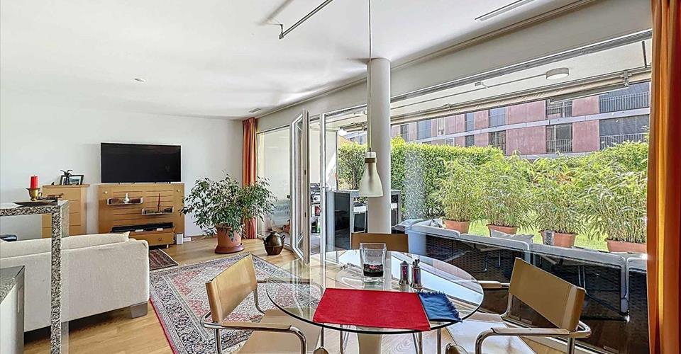 A moins de 10 minutes de Lausanne, au cœur d’un quartier résidentiel et récent du Mont-sur-Lausanne, cet appartement de 3.5 pièces offre un cadre de vie calme et serein. Sis au rez-de-chaussée, ce bien bénéficie d’une grande terrasse couverte et d’un joli jardin privatif. Excellemment bien entretenu, l’appartement offre une surface habitable d’environ 89 m2 répartie de la manière suivante : – un hall d’entrée avec armoires, – une cuisine ouverte équipée d’électroménager de qualité supérieure, – séjour avec accès à l’extérieur, – une grande terrasse couverte avec jardin privatif, – une chambre à coucher, – une salle d’eau avec colonne de lavage, – une chambre principale, – une salle de douche attenante à la chambre parentale. Une cave spacieuse ainsi qu’une place de parking intérieure (en sus) complètent l’inventaire de ce bien. La commune du Mont-sur-Lausanne offre un accès aisé à l’autoroute (Blécherette à 4 minutes) ainsi qu’au centre-ville de Lausanne (TL lignes 3 et 8 à 200 mètres du bien). Elle bénéficie de surcroit de toutes les commodités usuelles (écoles, supermarchés, commerces). Contactez-nous sans plus attendre pour une visite de ce bien !