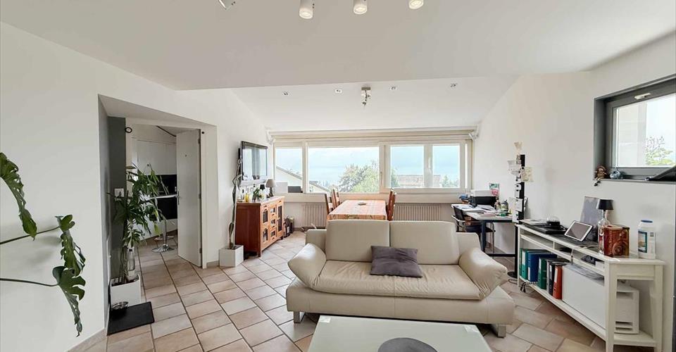 Situé idéalement à La Conversion, cet appartement bénéficie d’un très bel emplacement à quelques pas de la gare, du charmant village de Lutry, de ses commerces, écoles, restaurants et des accès autoroutiers. Une adresse idéale alliant tranquillité résidentielle et proximité directe avec les commodités du quotidien. Offrant une vue dégagée sur le lac Léman et les Alpes, ce bien rare se distingue par sa situation dominante et verdoyante. Niché au 1er étage d’une petite copropriété soignée, ce spacieux appartement de 125 m2 jouit d’une excellente luminosité et de beaux volumes. L’espace de vie s’ouvre sur une agréable terrasse arborée orientée sud-ouest, véritable extension naturelle de l’appartement, parfaite pour les moments de détente ou les repas en plein air, dans un environnement calme et verdoyant. L’intérieur se compose de : – Une entrée avec armoires encastrées – Un séjour lumineux avec une véranda donnant accès direct à l’extérieur – Une cuisine indépendante avec un garde-manger – Deux chambres confortables – Deux salles de bains dont une avec baignoire – Un WC visiteurs – Une grande pièce polyvalente (buanderie), facilement aménageable en chambre supplémentaire ou bureau