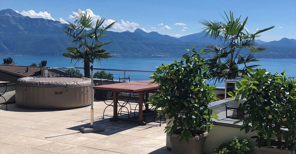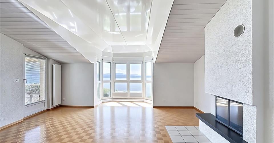 Superbe Attique de 3 1/2 pièces avec balcon et terrasse Dans une petite copropriété au calme, découvrez ce magnifique appartement de 3.5 pièces, idéalement situé au dernier étage et bénéficiant d’une terrasse exceptionnelle de plus de 100m². Les atouts de ce bien : Surface habitable généreuse de 94m², offrant un cadre de vie spacieux et confortable Grande luminosité tout au long de la journée grâce à une orientation optimale Vue imprenable sur le lac et les montagnes Petite copropriété bien entretenue, garantissant tranquillité et intimité Une place de parc extérieure et intérieure, au prix de chf 50’000.- les deux, s’ajoutent au prix du bien