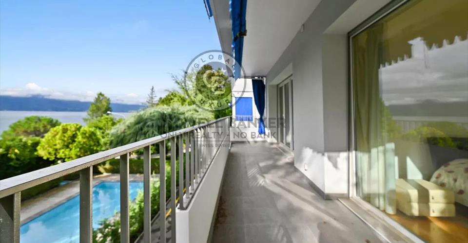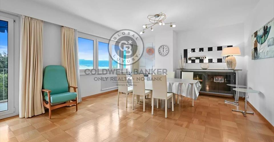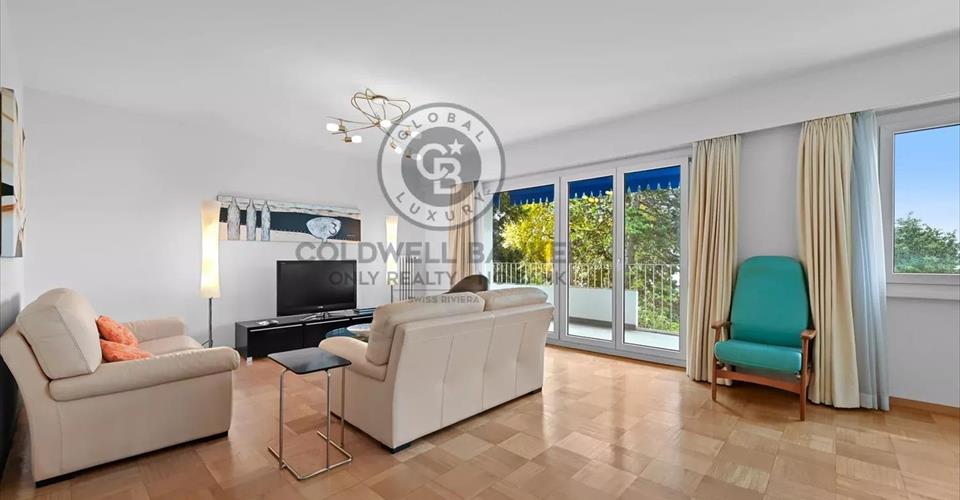 En exclusivité chez Coldwell Banker Swiss Riviera ! Ce spacieux appartement de 3.5 pièces se trouve à Clarens dans un quartier verdoyant à 2 pas des quais, il profite d’une situation exceptionnelle à 10 minutes à pied du centre-ville de Montreux. Un arrêt de bus se trouve à proximité immédiate. Situé dans une résidence de standing avec piscine extérieure, cet appartement d’env. 105 m2 pondérés bénéficie d’une magnifique vue sur le lac et les montagnes. Vente autorisée aux étrangers non-résidents en tant que résidence secondaire DISTRIBUTION Hall d’entrée Cuisine semi-ouverte Spacieux séjour avec salle à manger et accès balcon 3 salles de douches dont une avec colonne de lavage/séchage 1 chambre à coucher 1 chambre à coucher avec accès balcon Grand balcon Annexes Cave Grand garage-box en sus à CHF 50’000.- Visite uniquement en présence et/ou avec l’accord préalable de Coldwell Banker Swiss Riviera. Aucun document ne peut être transmis à des tiers sans autorisation.