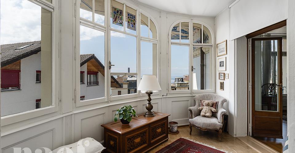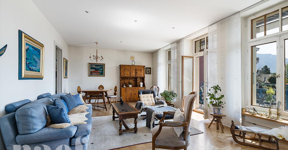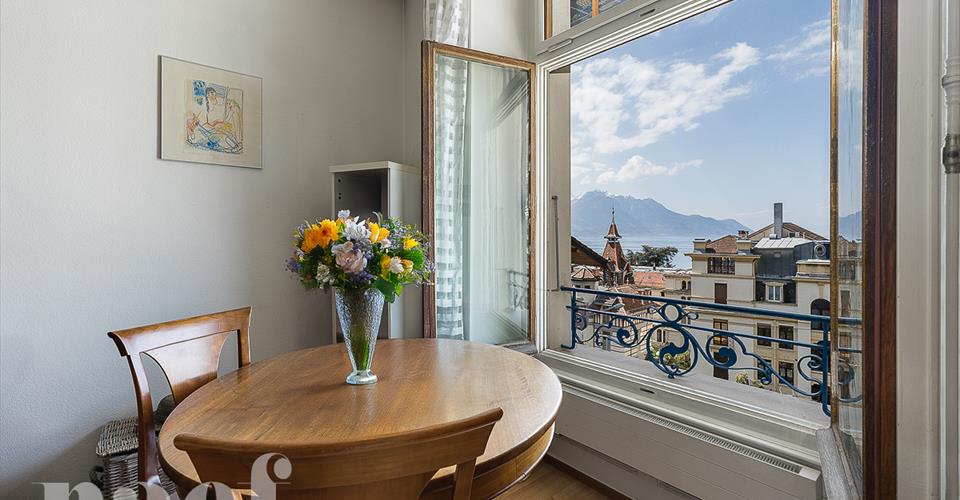 Situé au 3ème étage d’un immeuble de caractère construit en 1905, ce charmant appartement de 3.5 pièces offre env. 100 m² de surface pondérée. Baigné de lumière grâce à son orientation plein Sud, il bénéficie d’une magnifique vue sur le lac Léman et les montagnes environnantes. Le cachet de l’ancien, les volumes généreux et la luminosité en font un lieu de vie particulièrement agréable. Soigneusement entretenu, il se trouve en bon état général. Quelques travaux de rafraîchissement permettront de le moderniser à votre goût. Une cave est incluse. Une place de parc extérieure est proposée en sus du prix de vente, au prix de CHF 25’000.-. L’emplacement est idéal : à deux pas des transports publics, des commerces et du bord du lac. Le quartier de Territet, sur les bas de la commune de Montreux, offre un cadre de vie paisible et pittoresque, tout en étant proche des commodités et des attraits de la Riviera vaudoise. VENTE AUTORISEE AUX ETRANGERS NON-RESIDENTS