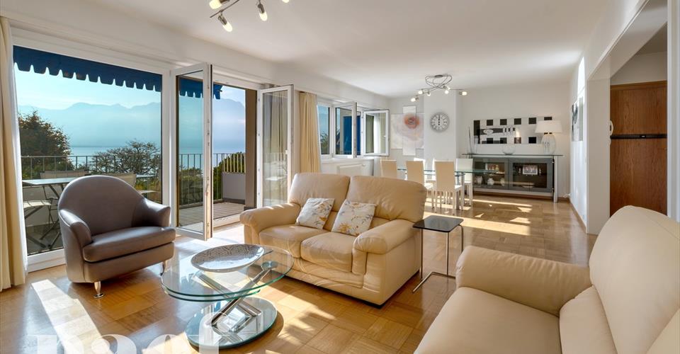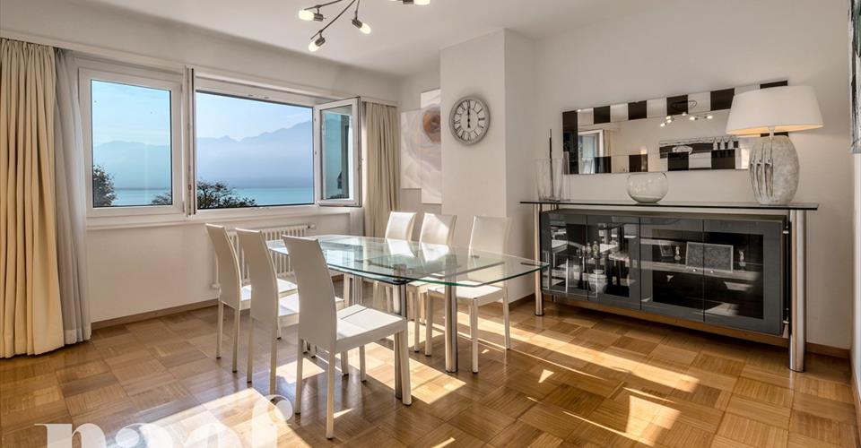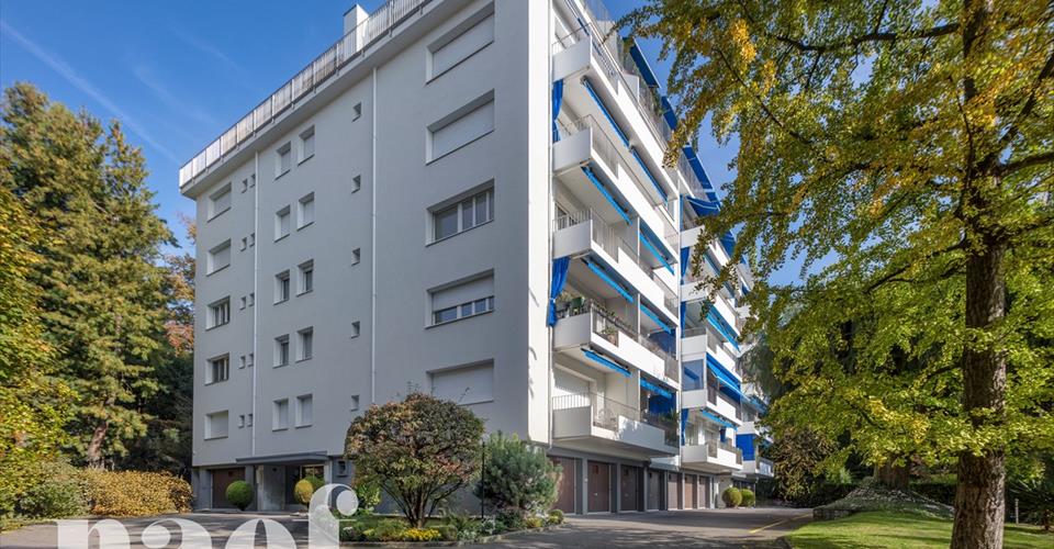 Orienté plein sud, ce spacieux logement de 3.5 pièces (possible 4.5 pièces) d’environ 105 m2 pondérés, possède un grand balcon et une vue magnifique sur le lac et les montagnes. Il propose un très grand séjour (possibilité d’installer une cheminée) ainsi qu’une cuisine fermée et une salle à manger. La partie nuit est composée de 2 chambres à coucher de belles dimensions et de 3 salles d’eau. Cette résidence propose un avantage très intéressant puisqu’elle offre à ses copropriétaires une piscine extérieure. Il est idéalement situé près du centre de la ville, à proximité immédiate des transports publics, des commodités, écoles, et commerces. Une cave ainsi qu’un garage pour deux voitures en sus du prix de vente complètent ce bien. VENTE AUTORISÉE AUX ÉTRANGERS NON RÉSIDENTS