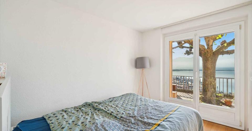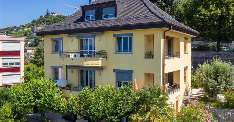 D’une surface habitable de 65 m2, l’appartement séduit par son agencement optimal et sa luminosité. Il dispose également d’une magnifique terrasse de 60 m2, idéale pour vos moments de détente tout en admirant la vue panoramique sur le lac Léman et les majestueuses montagnes. Construit en 1935 et rénové en 2014 (enveloppe extérieure), l’immeuble allie charme d’époque et confort moderne. Un potager ainsi que 1 place de parc extérieure complètent ce bien rare sur le marché. Les atouts de cet appartement : – 3,5 pièces lumineux et fonctionnel – Grande terrasse privative de 60 m2 – Vue imprenable sur le lac et les montagnes – Accès facile aux transports publics et commodités – Petit immeuble de 4 appartements – Potager privé Une place de parc extérieure est disponible en supplément pour 40’000 CHF. Ne manquez pas cette opportunité unique d’acquérir un appartement de qualité dans un cadre privilégié à Montreux.
