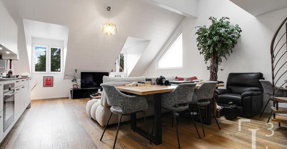 By L3 Properties | Région Morges +++ Au centre du village +++ Beaux volumes +++ Moderne avec des matériaux de qualité Situé dans le centre du village de Monnaz, à 5 min en voiture du centre-ville de Morges, ce duplex type loft est proche de toutes les commodités (écoles, commerces, bus, Poste etc). L’arrêt de bus est à 100m et la sortie d’autoroute à 4 km. Surface habitable : 90 m2 Nombre de chambres : 2 Nombre de salles de bain : 1 Au calme et lumineux, ce duplex est en attique au deuxième étage + combles dans un petit immeuble avec ascenseur de 9 appartements. Construit en 2021, l’appartement de 3.5 pièces est en bon état et se compose comme suit : Une cave Une place de parc intérieure avec borne de chargement et une place de parc extérieure complètent l’appartement (prix en sus). Infos & visites : L3 Properties www.L3-properties.ch