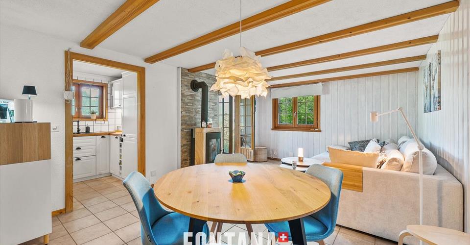 Ormont-Dessus 1865 Les Diablerets se situe dans le district de Aigle, dans le Canton de Vaud. La population dans la commune politique de Ormont-Dessus a varié au cours des cinq dernières années de -0,4% en moyenne par an, s’élevant à 1 423 habitants (Etat le 31 déc. 2023). Le taux d’imposition est de 14,2% (canton: 13,8%). Durant les cinq dernières années, la construction de logements dans la commune s’est élevée à 1,0% en moyenne par an, alors que le taux de logements vacants actuels est de 1,9% (Etat le 1er juin 2024). Les prix immobiliers ont varié de +9,1% au cours des cinq dernières années (canton: +20,6%). Charmant appartement de 3,5 pièces aux Diablerets Résidence secondaire autorisée – Vente possible aux non-résidents Niché dans un écrin de nature au coeur des Alpes vaudoises, ce charmant appartement de 3,5 pièces vous accueille dans une ambiance chaleureuse et authentique, au sein d’un chalet composé de seulement trois lots. Idéalement situé dans un quartier paisible du village des Diablerets, il offre à la fois tranquillité, confort et un panorama à couper le souffle sur les sommets environnants. Le chalet, construit en 1985, abrite cet appartement qui a été soigneusement rénové en 2015. Avec une surface habitable d’environ 79 m², il est parfaitement agencé pour les séjours en montagne, en famille ou entre amis. Le logement se compose d’un hall d’entrée, d’un couloir de distribution, de deux chambres confortables, d’un séjour lumineux avec coin salle à manger et poêle à bois scandinave, d’une cuisine équipée, d’un WC séparé, ainsi que d’une salle de bains. À l’extérieur, vous profitez de deux espaces de détente : une grande terrasse couverte orientée plein Sud (environ 16 m²), idéale pour profiter du soleil même en hiver, et une terrasse Est, parfaite pour les petits-déjeuners face aux montagnes. L’appartement bénéficie d’un chauffage électrique par le sol, avec thermostat individuel dans chaque pièce, garantissant un confort optimal tout au long de l’année. Le poêle à bois apporte une touche chaleureuse supplémentaire, parfaite pour les soirées d’hiver. Le cadre est particulièrement calme et ensoleillé, et l’absence de vis-à-vis permet de jouir d’une vue complètement dégagée et définitive sur le village et les sommets environnants. Une cave individuelle et une place de parc extérieure sont également comprises dans la vente. Ce bien rare est accessible en résidence secondaire et peut être acquis par des acheteurs étrangers, sans restriction. Que vous recherchiez un pied-à-terre à la montagne, un lieu pour vos vacances en famille ou un investissement patrimonial, cet appartement saura vous séduire par sa situation, son charme et son excellent état. Disponibilité : de suite Appartement vendu entièrement meublé. Remarques Cet appartement à l’avantage d’être exclu de la Lex Weber et donne l’opportunité à toutes les personnes suisses ou étrangères de devenir propriétaire d’une résidence secondaire en montagne. Données techniques Couverture : Eternit Sous-bassement : Béton armé Fenêtres : double vitrages Sols : parquet et carrelage Chauffage électriques, distribué par le sol poêle à bois