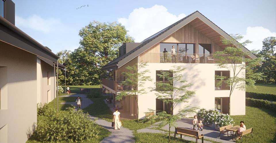 Nichée au coeur du village de Orny, La Bergerie tire son nom de l’ancienne exploitation du site. Entre la rivière et les fermes villageoises qui caractérisent les lieux, ce nouveau projet se compose de 3 bâtiments implantés de telle sorte à créer des espaces conviviaux et intimistes Chaque bâtiment accueillera 6 appartements, avec des typologies allant du 2.5 aux 4.5 pièces. Répartis sur trois étages uniquement, les immeubles se caractérisent comme à taille humaine et disposent d’une atmosphère familiale et reposante. Un agréable espace vert commun agrémenté d’une place de jeu favorisent les échanges entre voisins. Tous les logements profitent également d’un espace extérieur, une terrasse avec jardin ou un balcon, permettant de profiter du calme de l’environnement. D’un point de vue architectural, La Bergerie s’intègre harmonieusement dans son nouveau quartier, grâce à des façades boisées, évoquant ainsi la nature environnante. Un parking souterrain d’une capacité de 14 places permet un accès direct au sous-sol de chaque bâtiment, qui accueille les caves, un local vélos, ainsi qu’une buanderie commune pour 6 appartements. Place de parc intérieure en sus CHF 30’000.- l’unité. Découvrez le site dédié au projet : https://ppe-labergerie.ch/