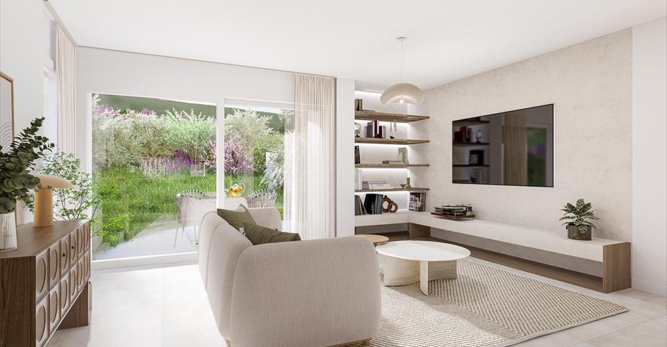 Situé au rez-de-chaussée du bâtiment A, cet appartement de 3.5 pièces offre une surface habitable généreuse de 82 m², complétée par une terrasse de 18 m² et un magnifique jardin privatif d’environ 50 m², véritable prolongement naturel de votre espace de vie. Pensé pour allier confort moderne et qualité de vie, le logement se distingue par sa luminosité, ses volumes bien agencés et ses finitions personnalisables. Grâce à ses grandes baies vitrées orientées sud, vous bénéficiez d’un cadre de vie lumineux et apaisant tout au long de la journée. Distribution : Spacieux séjour/cuisine de 33 m² ouvert sur l’extérieur 2 belles chambres (13 m² et 14 m²) 1 salle de bain Hall d’entrée avec rangements Terrasse de 18 m² et jardin de 50 m² Atouts : Accès direct au jardin depuis le séjour Finitions au choix avec des budgets généreux (cuisine équipée en Miele et plan de travail en granit) Cave privative incluse Place de parc extérieure équipée d’arrivée électrique, disponible en sus Une qualité de vie rare, entre calme résidentiel, nature, et proximité immédiate des commerces et du coeur d’Oron.