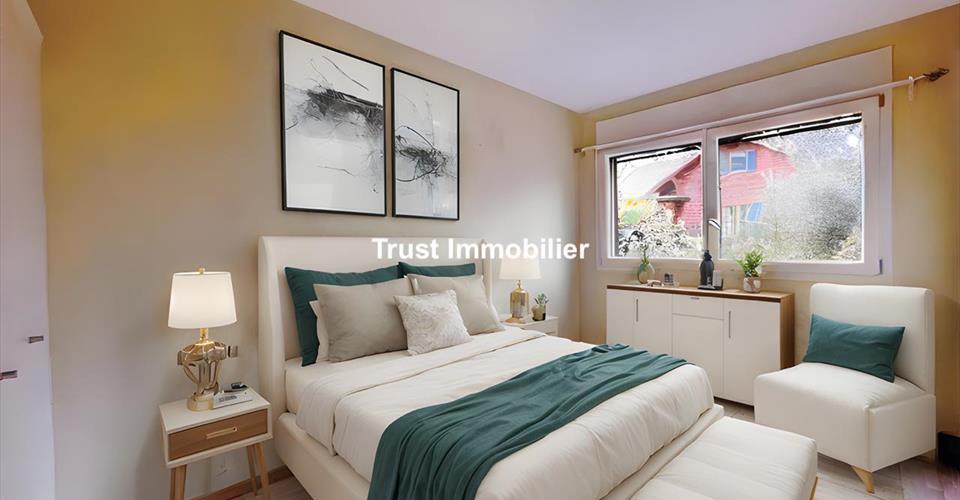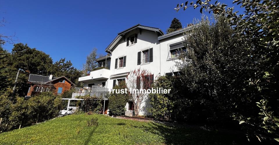 Appartement 3.5 pièces à vendre à Troinex, Genève Trust Immobilier, agence immobilière à Genève et Crans-Montana, vous propose Ref. TGE-4047.D Niché dans une maison familiale de style classique, cet appartement en PPE de 3,5 pièces offre un espace de vie confortable. Situé au rez-de-chaussée supérieur, il bénéficie d’une luminosité agréable et d’une vue dégagée sur le Salève. Idéalement situé à proximité de Carouge, des écoles, lycées et commerces, cette propriété bénéficie d’un excellent réseau de transports en commun et est à dix minutes à pied du CEVA Lancy-Bachet. Un atout majeur : cet appartement est éligible à la CASATAX. Construite en 2010 avec des matériaux de bonne qualité, l’appartement est en parfait état. Il se compose : un séjour ouvrant sur un grand balcon deux chambres hall d’entrée cuisine partiellement équipée une salle de bains avec WC Le chauffage au sol diffuse une chaleur homogène pour un confort optimal. Une cave complète ce bien. Un parking ( servitude exclusive) est disponible au prix de CHF 20 000. Vente de ce bien en DSDP (Droit de superficie avec droit de disposition) avec le bail de 99 ans. Les amoureux de la nature seront ravis : cette propriété est située à quelques pas des sentiers autour de la rivière Drize et des chemins cachés de Troinex. En plus, elle vous offre un cadre de vie privilégié avec un grand jardin où vous pourrez profiter de plusieurs espaces barbecue, sous réserve de l’accord de propriétaire d’immeuble. www.trustimmobilier.ch