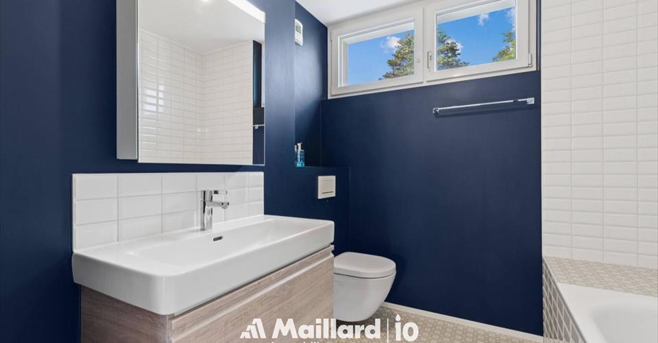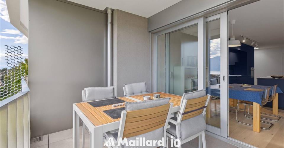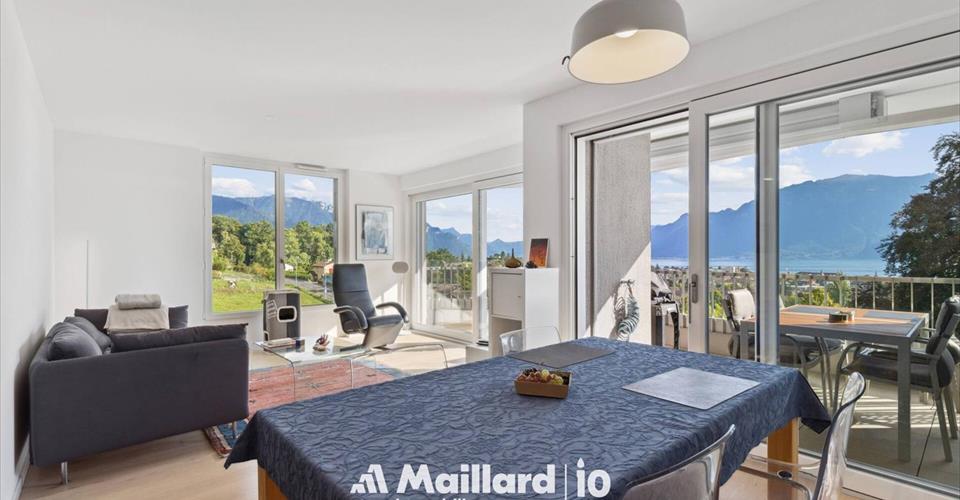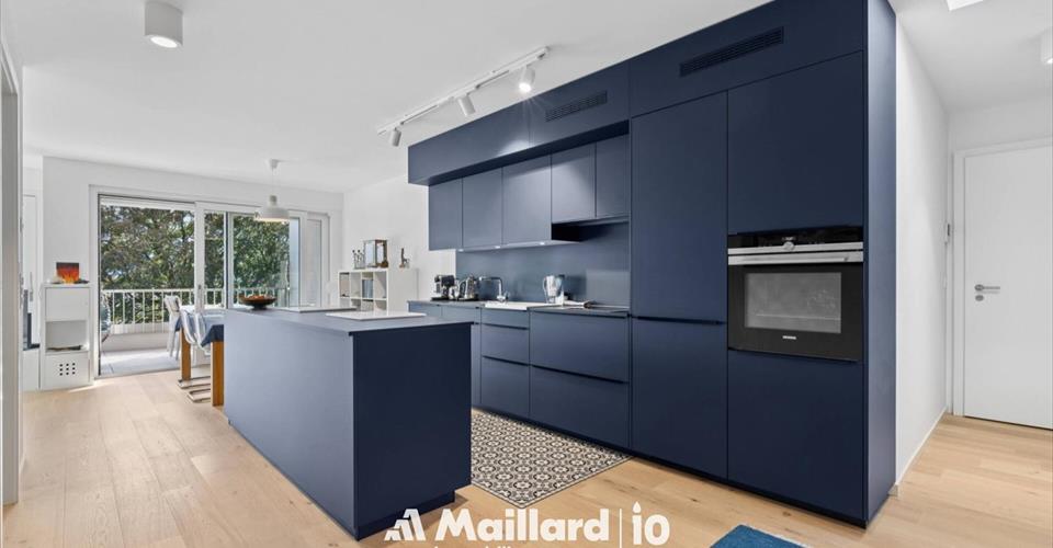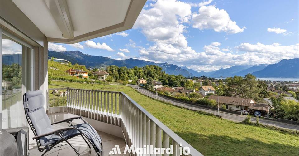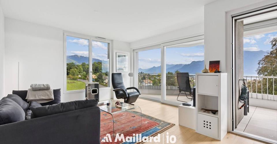 Exclusivité Maillard Immobilier! Situé dans un quartier paisible et niché dans un écrin de verdure de Vevey, ce magnifique appartement de 3.5 pièces se trouve au sein d’un immeuble contemporain labellisé minergie. Construit avec des matériaux de qualité, il séduit par son atmosphère chaleureuse et ses finitions soignées. L’agencement des pièces est optimisé pour offrir un bel équilibre entre espace de vie et intimité, idéal pour une famille ou un couple en quête de confort. L’appartement vous offre une magnifique vue sur le lac et les montagnes, le tout situé dans un environnement calme et verdoyant. La distribution se fait comme suit: Hall d’entrée avec armoires Spacieux séjour accédant au balcon par de grandes baies vitrées Balcon/terrasse de 15 m2 Cuisine entièrement agencée ouverte sur le séjour Deux chambres à coucher doubles Salle de bain avec baignoire et WC Salle de douche avec WC ainsi qu’un espace pour la colonne de lavage Une grande cave de 8 m2 ainsi qu’une place de parc intérieure double (prix en sus de CHF 70’000.-) complètent ce magnifique appartement. Un bien rare à Vevey, qui allie qualité, confort et cadre enchanteur. À visiter sans tarder ! Contact : Sandra Shipley