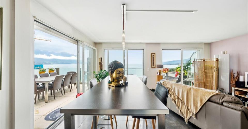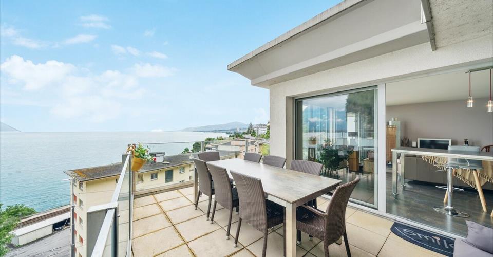 Superbe attique de 95 m² au cœur de Territet-Veytaux À seulement 5 minutes de Montreux et 3 minutes du bord du lac, ce lumineux attique séduit par son charme et son emplacement privilégié. Situé dans un bel immeuble PPE de 9 lots, il offre calme, confort et une qualité de vie rare entre lac et montagnes. Un bien rare dans l’une des plus belles régions de Suisse romande. – Calme et proche de toutes commodités – Extérieur avec Terrasse de 27 m2 – Soigneusement entretenu – Avec une belle luminosité et vu imprenable – Cave et un garage box en sus Prix de vente appartement : CHF 995’000.- Prix de vente du garage box : CHF 50’000.- Prix de vente total : CHF 1’045’000.-