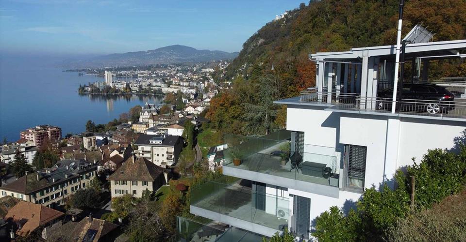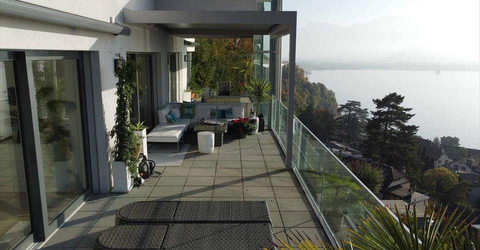 Cet appartement en attique de 3,5 pièces offre une surface habitable de 82 m² et s’ouvre sur une vaste terrasse de 40 m², parfaite pour profiter d’un panorama grandiose. Sa surface pondérée s’élève à 102 m². Situé dans une PPE de seulement 5 appartements répartis sur 3 niveaux, cet immeuble bénéficie d’un ascenseur desservant chaque étage, assurant ainsi un accès facile et pratique. À environ 5 minutes en voiture du centre de Montreux, cet emplacement permet de combiner sérénité et proximité des commodités. Cet appartement est disponible pour un achat en résidence principale ou secondaire, et peut également être acquis par des acheteurs étrangers non résidents. Prix de l’appartement : CHF 1’170’000.- 2 places de parc couvertes : CHF 50’000.- Prix total : CHF 1’220’000.-