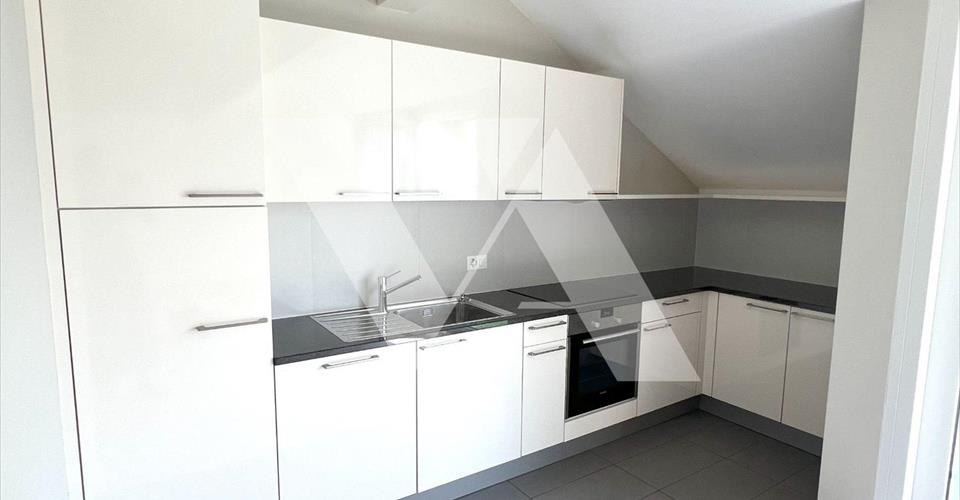 Situé au dernier étage d’un immeuble avec ascenseur, cet appartement lumineux et calme offre env. 91 m² de surface utile. Il comprend: – Un séjour/salle-à-manger avec cuisine ouverte, donnant sur un balcon orienté sud-ouest avec vue sur le village, les vignes et le Jura – Deux chambres avec armoires intégrées – Une salle de bain avec WC – Un WC visiteurs – Un hall avec rangements et colonne lave-linge/sèche-linge. Une mezzanine moderne (non-habitable) avec armoires intégrées complète l’espace. Une cave équipée, une place de parking dans un garage souterrain (CHF 38’000 en sus) et une place de stationnement extérieure (CHF 15’000 en sus) accompagnent ce logement. Environnement paisible, sans vis-à-vis, proche des commodités et de l’autoroute. Ce bien est une opportunité rare à saisir ! N’hésitez pas à nous contacter pour plus d’informations sur ce bien, ou pour organiser une visite. Nous serons ravis de vous renseigner ! ———————- Located on the top floor of a building with lift access, this bright and tranquil apartment offers approximately 91 m² of usable floor space. It comprises: – A living/dining room with an open-plan kitchen, opening onto a south-west-facing balcony with views over the village, vineyards, and the Jura mountains – Two bedrooms with built-in wardrobes – A bathroom with WC – A separate guest WC – A hallway with fitted storage and a washer/dryer column A stylish, non-habitable mezzanine with integrated cupboards completes the space. The property also includes a fitted cellar, a parking space in the underground garage (CHF 38,000 extra), and an outdoor parking space (CHF 15,000 extra). Set in a peaceful environment with no overlooking neighbours, the apartment is conveniently located close to amenities and the motorway. This is a rare opportunity not to be missed. Please do not hesitate to contact us for further information or to arrange a viewing – we would be delighted to assist you !