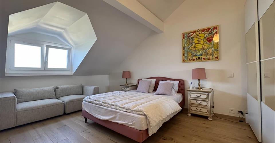Découvrez un charmant duplex à Villeneuve Situé au 2ème étage avec combles d’un immeuble équipé d’un ascenseur, ce superbe appartement de 3,5 pièces offre 110 m² d’espace habitable. Récemment rénové en 2023, il combine confort moderne et cadre de vie paisible, idéal pour profiter d’un environnement serein et baigné de lumière. Caractéristiques principales : Salon accueillant : Un espace généreux avec un sol en carrelage, parfait pour des moments de détente ou pour recevoir des invités. Vue exceptionnelle : Un panorama époustouflant sur le lac et les montagnes environnantes. Balcon privatif : Un espace extérieur idéal pour savourer la beauté des paysages. Garage en supplément : Une place de parking souterrain disponible pour CHF 50’000.–. Points forts : Cet appartement se distingue par son calme absolu, de jour comme de nuit, et par une luminosité optimale en été. Les rénovations de 2023 garantissent des finitions modernes et un confort de vie de premier ordre. Emplacement idéal : Niché à Villeneuve, ce bien profite d’un cadre enchanteur entre lac et montagnes, avec toutes les commodités à portée de main. Disponible immédiatement, il est parfait pour une résidence principale ou un pied-à-terre. Une occasion unique de posséder un bien d’exception dans une région prisée du canton de Vaud.