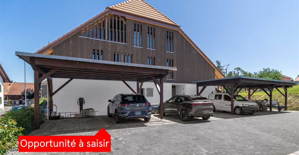Ce spacieux appartement de 3.5 pièces, situé au 1er étage d’une ferme rénovée classée Monument Historique, vous propose un cadre de vie unique dans le village de Vallamand-Dessus, où la sérénité règne en maître. Avec une surface habitable de 81 m² et un jardin privatif de 91 m² au rez-de-chaussée, ce logement neuf allie à la perfection le charme des vieilles pierres et les standards du confort moderne, grâce à des finitions de haute qualité : ascenseur, armoires murales en suffisance, réduit accueillant un emplacement pour la colonne de lavage, suite parentale avec salle d’eau attenante, et cuisine ouverte équipée d’un bar et d’un plan de travail en granit. Les passionnés d’authenticité seront séduits par le caractère singulier de l’ancien agrémenté de touches résolument contemporaines. En sus, vous disposerez de 2 places de parking extérieures, dont une couverte, pour un prix total de CHF 40’000.-. Une cave sur le même palier complète également ce bien d’exception. N’hésitez pas à prendre rendez-vous pour découvrir ce lieu unique lors d’une visite sur place. Découvrez la promotion sur www.renaissance-vallamand.ch