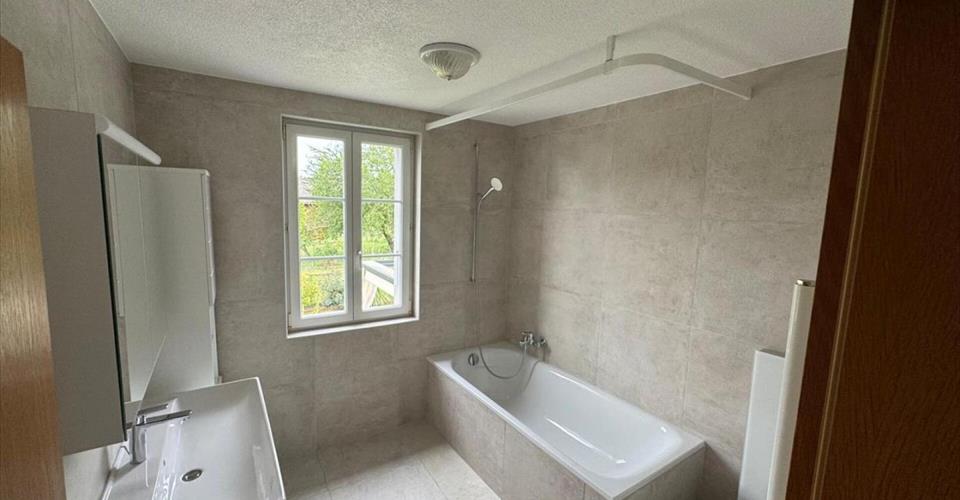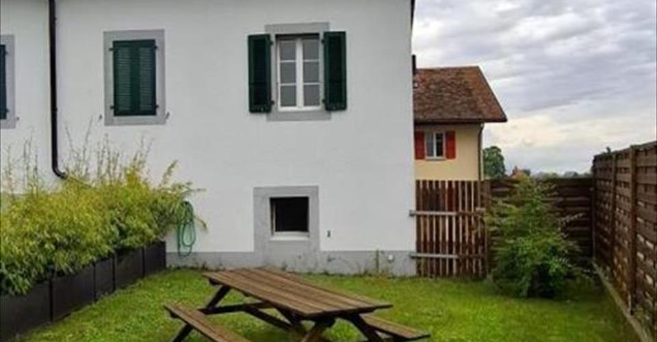 Situé dans une bâtisse pleine de cachet, cet appartement de 3.5 pièces rénové au 1er étage apporte une luminosité naturelle exceptionnelle. Agencement : Hall d’entrée Cuisine agencée ouverte sur un séjour spacieux Deux chambres confortables Salle de bains avec WC 1 WC visiteurs 1 cave Accès au jardin commun Possibilité de louer 1 ou 2 places de parc extérieures à CHF 40.-/pl. Environnement : Cadre calme et verdoyant Proximité immédiate de la nature Accès rapide à l’autoroute Pour organiser une visite ou obtenir plus d’informations, veuillez contacter le service location ou par email à