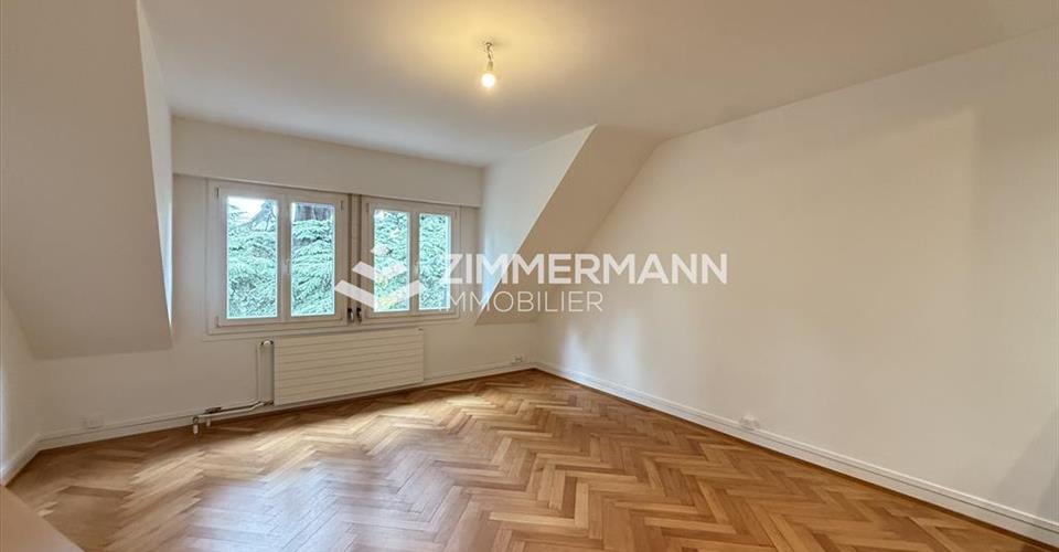 Spacieux duplex de 3,5 pièces en attique à Chêne-Bougeries Référence : 5370-304 Quartier : Le chemin de Grange-Canal est idéalement situé dans la commune de Chêne-Bougeries, sur la rive gauche de Genève. Le quartier de Grange-Canal est apprécié pour son cadre résidentiel paisible et verdoyant. Proche du centre-ville tout en offrant un environnement calme, il séduit les familles grâce à ses écoles réputées et ses espaces verts. Transports : L’arrêt du tram 12 & 17 « Grange-Canal » se trouve à 4 min à pied du bien, offrant une connexion rapide vers le centre-ville, Carouge et les communes voisines. À 3 minutes à pied, la ligne de bus 33 permet de rejoindre facilement les quartiers environnants. Commodités : L’école primaire Pré-Picot se situe à 3 min à pied, le collège de la Gradelle est à 5 min à pied. Vous rejoindrez le centre-ville en moins de 10 min en transports publics. À 5 minutes à pied, vous trouverez une boulangerie, une pharmacie et des magasins d’alimentation. La clinique des Grangettes est à seulement 7 minutes à pied. Le centre commercial de la Praille, avec ses boutiques et restaurants, est accessible en 10 minutes en tram. Le parc Bertrand est à 7 minutes. Cet appartement de 94m2 est composé comme suit Au rez : -Une cuisine ouverte agencée et équipée -Un séjour -Un WC visiteur A l’étage : -Bel espace ouvert d’environ 20m2 -Une suite parentale avec sa salle de bain attenante munie de branchements pour lave-linge Voici les documents requis pour votre candidature : – Pièce d’identité suisse/permis de séjour – Une attestation de non-poursuite de moins de 3 mois – Une attestation récente de votre employeur mentionnant la date d’entrée en fonction, le salaire et le type de votre contrat actuel Pour déposer votre candidature, veuillez utiliser le lien suivant : https://rentalapplication.zimmermannimmobilier.ch/?ref=5370-304 Les charges mentionnées, ci-dessus, sont composées comme suit : CHF 140.- de charges CHF 90.- de frais accessoires
