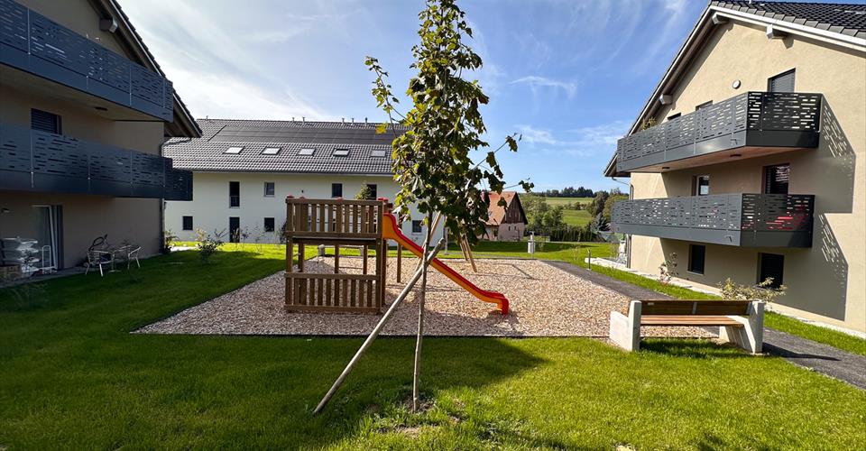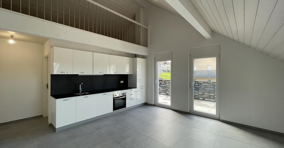 Situés dans un immeuble récent (construit en 2023), ce magnifique logement de 3.5 pièces offre un cadre de vie agréable. Il se trouve proche de la nature mais également à proximité de toutes les commodités (transports publics, centre-village, commerces et axes autoroutiers). Cet appartement situé au 2ème et dernier étage dispose d’une mezzanine, d’un balcon, d’une salle de douche/WC pour environ 75m2 habitables. Ce magnifique 3.5 pièces se compose comme suit : – Hall d’entrée avec armoire – Séjour lumineux avec baie vitrée – Cuisine équipée ouverte – Deux chambres – Salle-de-douches/ C avec raccordement pour colonne de lavage privative – Balcon – Cave – Chauffage au sol avec système de pompe à chaleur – Ascenseur – Buanderie commune dans l’immeuble – Places de parc dans parking intérieur – Place de jeux LOYER : CHF 1’590.- + CHF 155.- d’acomptes de charges, soit CHF 1’745.- au total 2 places de parc intérieures en sus (CHF 100.00/par place). DISPONIBILITÉ : Dès le 1er décembre 2025 VISITES : Locataire actuel M. De Oliveira ADRESSE : Route d’En-Bas 33 à 1084 Carrouge (VD)