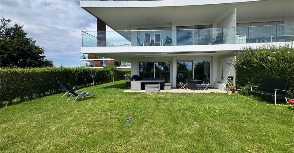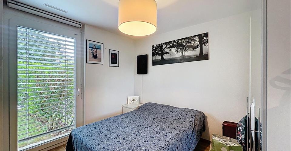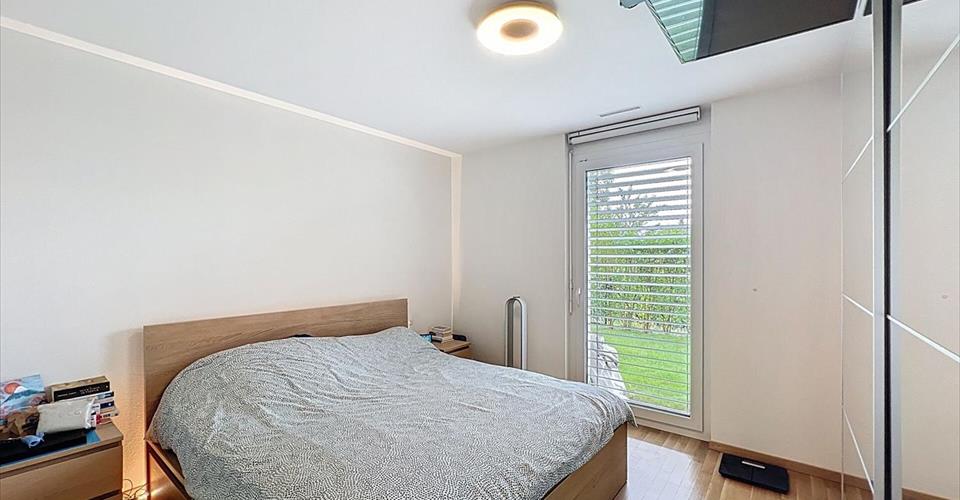 Cet appartement de 3,5 pièces d’env. 80 m² habitables séduit par sa modernité, sa luminosité et son cadre sans vis-à-vis, garantissant une intimité rare. Le bien se dispose comme suit : Hall d’entrée avec armoire murale Pièce à vivre avec grandes baies vitrées, offrant beaucoup de luminosité Cuisine moderne entièrement équipée avec ilot central / bar Deux chambres à coucher Salle-de-bains/WC avec possibilité d’installer une colonne de lavage Salle-de-douches/WC À l’extérieur : Terrasse couverte d’env. 18 m² Spacieux jardin clôturé d’env. 174 m², verdoyant et ensoleillé Le domaine ” Belvédères des Morettes ” bénéficie d’un parc paysager commun avec espaces verts soignés, offrant une ambiance résidentielle calme, des chemins piétonniers et zones de détente pour les habitants. Une situation idéale : 3 minutes à pied du supermarché Coop 3 minutes à pied de l’arrêt TL Côtes (ligne 8) 4 minutes de l’école primaire et secondaire du Mont 6 minutes de l’École Internationale (ISL) Accès rapide à l’A9 (sortie Blécherette) Centre de Lausanne (env. 8 min en voiture) Cette localisation offre un parfait équilibre entre tranquillité résidentielle et commodités urbaines. Une cave vient compléter ce bien. La place de parc extérieure couverte bénéficie du pré équipement pour l’installation d’une borne de recharge. Le détail du loyer est le suivant : Loyer net : CHF 3’090.- Forfait de charges : CHF 260.- 1 place de parc extérieure couverte : CHF 150.- Total : CHF 3’500.- Le bien sera disponible au 1er novembre 2025. Intéressé(e)s ? Mme Sabrina Killias () se tient à votre entière disposition pour tout complément d’information et/ou pour l’organisation d’une visite des lieux.