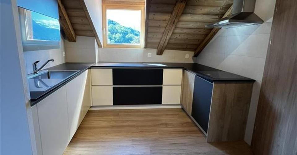 Magnifique appartement de 3.5 pièces moderne et spacieux dans une ancienne grange rénovée, au 2ème étage, situé au centre du village d’Ollon. 2 chambres à coucher avec fenêtres Nord Salle de douche Cuisine entièrement équipée ouverte sur le séjour avec fenêtres Sud-Est Mezzanine Situation centrale, proche de la gare Cette promotion est idéale pour ceux qui recherchent un cadre de vie paisible, en harmonie avec l’histoire et le caractère de la vieille ville, tout en profitant d’un confort contemporain.