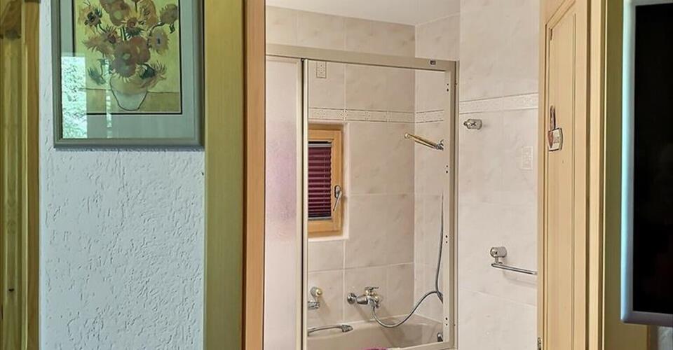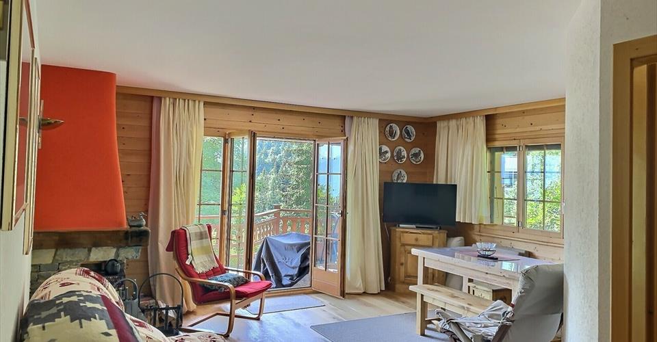 Cet appartement agréable et lumineux, entièrement meublé, se compose de deux belles chambres avec chacune sa salle de bain privative. Dans le hall d’entrée se trouvent de pratiques armoires avec miroirs. Appartement : 2’000 CHF Charges : 250 CHF TV + internet : 100 CHF Place intérieur : 150 CHF Place extérieure : 100 CHF Total : 2’600 CHF L’électricité est payée directement par les locataires. La première chambre comprend deux lits simples et salle de bain avec WC et douche. La deuxième chambre est la suite parentale avec sa grande salle de bain avec baignoire. Cette chambre offre un accès direct vers la terrasse et le jardinet. Le salon est spacieux avec cheminée et porte-fenêtre donnant vers la terrasse. La cuisine munie d’un lave-vaisselle dispose également d’une porte vitrée vers la terrasse. Une cave et deux places de parc viennent compléter cet appartement. Une place de parc couverte à l’extérieur et l’autre dans le garage sous le bâtiment. Accès direct, avec ascenseur, depuis le parking intérieur au bâtiment. Buanderie commune sur le même palier.