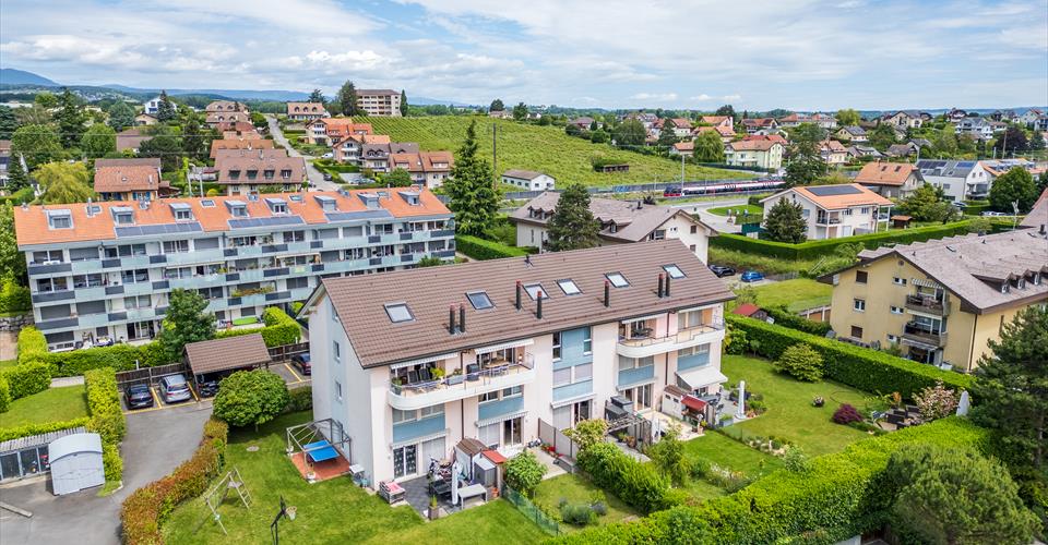 A LOUER Route de Buchillon 21, 1162 St-Prex, à deux pas du lac Disponible de suite, cet appartement de standing de 3,5pces- 90 m2 en attique (sans balcon) allie confort moderne et sénénité, dans un cadre privilégié. Chambres climatiséés Cuisine entièrement équipée 2 salles d’eau Vélux avec petite vue sur le lac 1 place de parc extérieure Loyer Frs 2’200.– Charges Frs 200.– Place de parc Frs 100.– Total Frs 2’500.– Disponible immédiatement