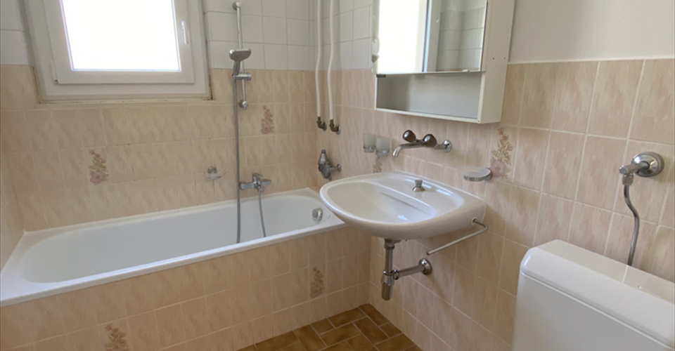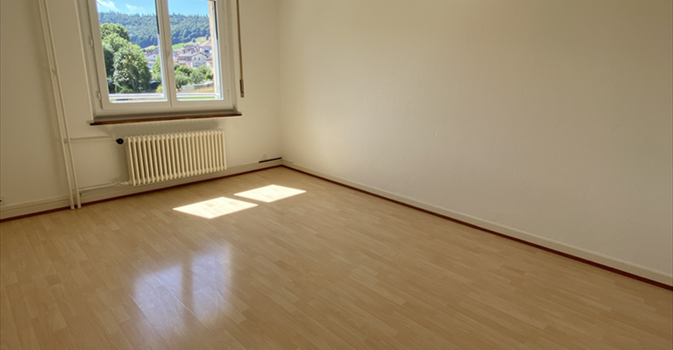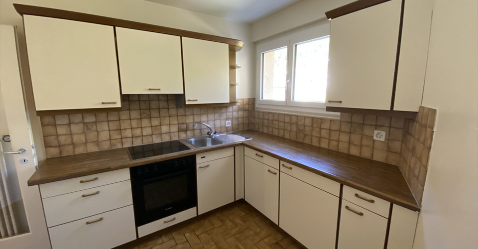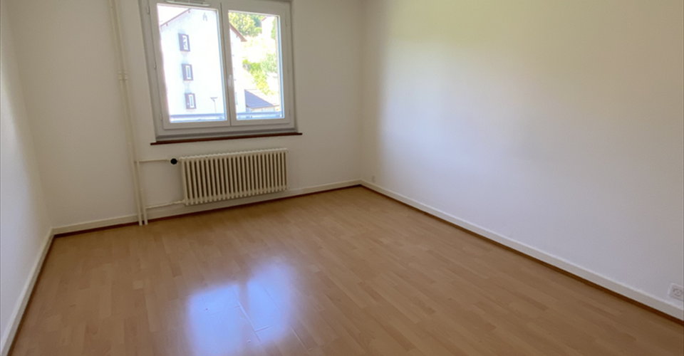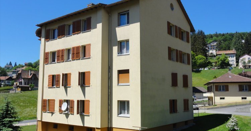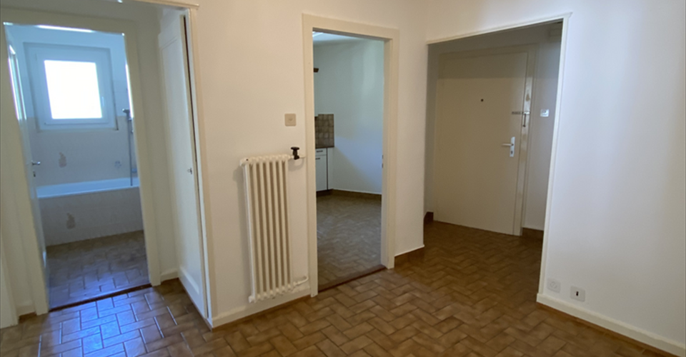 Appartement de 3.5 pièces au 3ème étage comprenant : Grand hall Cuisine agencée habitable Séjour 2 chambres Salle-de-bains / WC Cave Disponible de suite ou à convenir