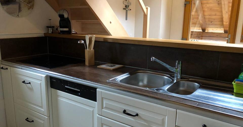 Appartement 3.5 avec mezzanine de 80m2 L’appartement se situe au premier étage, accès escalier. L’appartement est composé d’une entrée , cuisine ouverte sur salle à manger, salle de bains ( wc et baignoire) et 2 chambres à coucher ( équipée chacune avec un lit double). A l’étage une mezzanine , salon avec fauteuils et lit gigogne (2 lits simples) et une buanderie. Un petite zone abritée devant l’entrée en haut des escaliers peut servir de balcon. L’appartement à beaucoup de cachet, mansarde, poutre, vue campagne au calme. Loyer 1980.-/mois Charges 180.-/mois 2 place de parc 120.-/mois Loyer total 2280.-/mois
