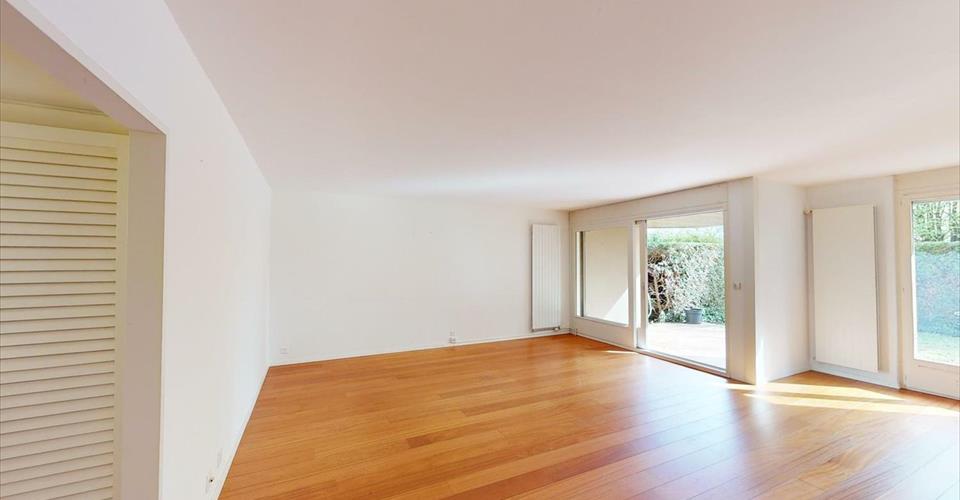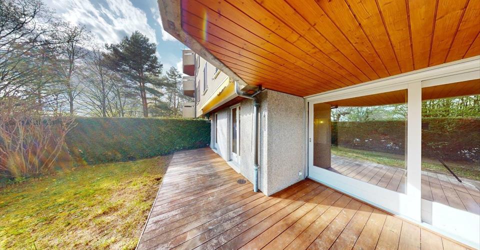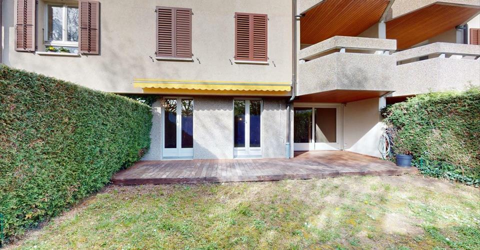Notre agence immobilière à Genève vous propose à la vente ce charmant appartement de 3 pièces, niché en rez-de-jardin d’une élégante résidence sécurisée de Cologny et proche de toutes commodités, notamment des transports en commun. Libre de tout occupant dès fin Août 2025, ce charmant appartement est idéal pour un jeune couple primo-accédant avec avantage CASATAX ou pour un investisseur souhaitant développer son patrimoine immobilier. Totalisant une surface PPE de 66 m2 + une loggia de 5 m2 modifiée en grande terrasse, ce bel appartement jouit en exclusivité d’un jardin clôturé et arboré d’environ 50 m2. Sa typologie et ses caractéristiques se décrivent comme suit : Environnement & extérieurs : Appartement lumineux grâce à une exposition idéale SUD/OUEST Environnement calme et serein. Jardin clôturé et arboré. Grande terrasse en bois. L’appartement : Un hall d’entrée communiquant directement avec le grand salon séjour doté d’une large baie vitrée en lien avec la loggia/terrasse. Une cuisine ouverte dotée d’une porte-fenêtre avec vue sur le jardin. Une chambre avec vue sur le jardin et dotée d’armoires intégrées. Un dressing faisant office de sas entre pièce de vie et salle d’eau. Une grand salle de douches + WC. Au sous-sol, une place de parking privative en sus du prix (CHF 60’000,-) Une cave complète ce bien. Prestations complémentaires : Une buanderie commune. Un grand garage à vélos et deux-roues. Au sous-sol, deux stations de lavages autos à disposition des copropriétaires. Des espaces verts bien entretenus. Une visite immersive 360° est disponible, demandez votre code d’accès. Certaines photos sont générées par l’IA afin de vous présenter ce que peut devenir ce bien après rafraichissement et aménagement. Pour de plus amples renseignements, contactez-nous sans plus attendre.