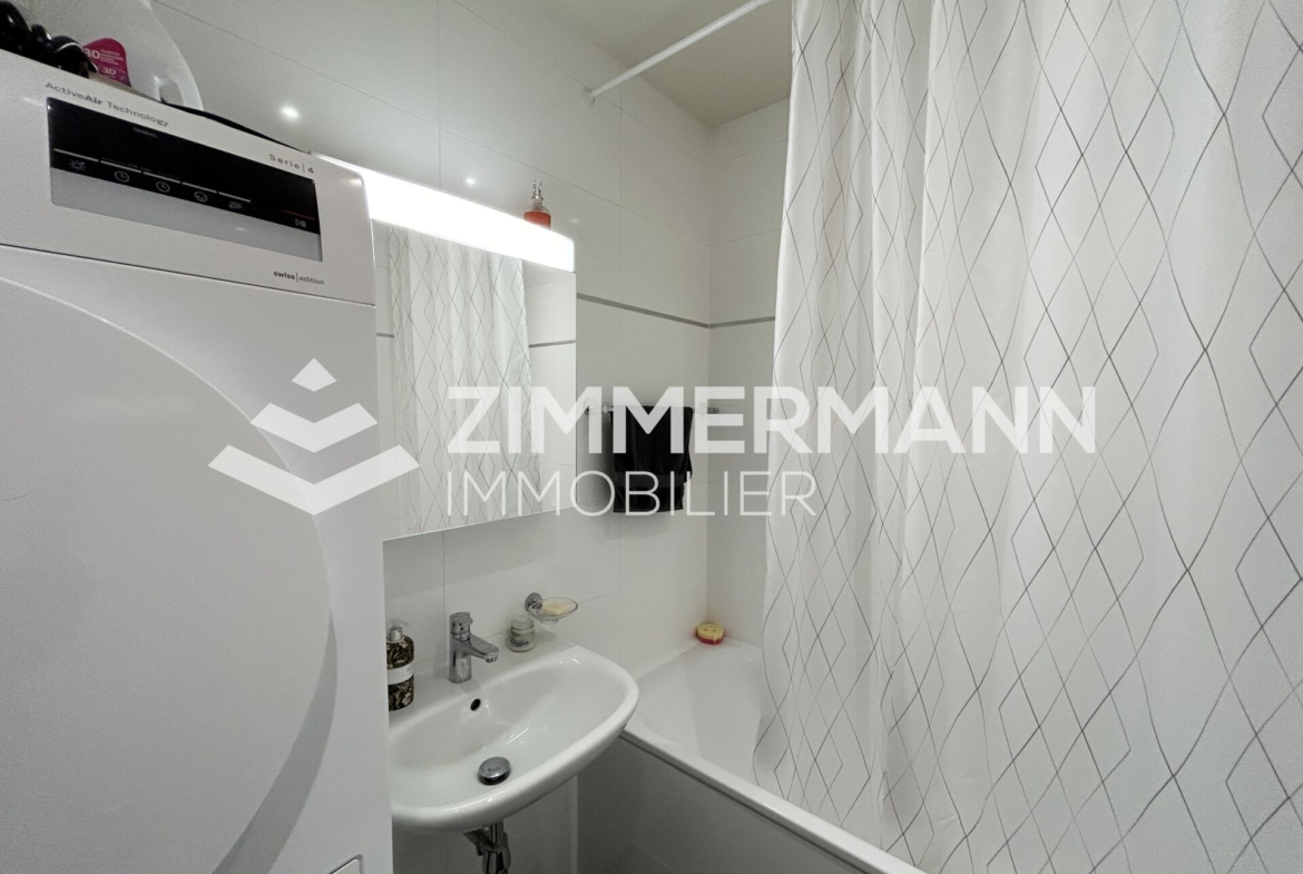 Hall d’entrée offrant un espace de rangementCuisine ouverte, entièrement agencée et équipée (four, réfrigérateur, plaques vitrocéramiques, lave-vaisselle)Séjour lumineux de 13.6 m²Chambre à coucherSalle de bains munie de branchements pour lave-linge2 Cave liées Charges mensuelles: CHF 178.- PPE + CHF 127.- charges