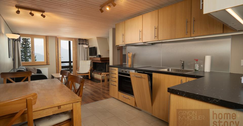 Imaginez-vous, tasse chaude à la main, sur votre balcon baigné de soleil, face aux majestueuses Dents-du-Midi. L’air pur emplit vos poumons, tandis que la forêt et les alpages tout proches invitent à la détente. En hiver, les pistes de l’Alpe des Chaux ne sont qu’à quelques pas, prêtes à offrir leurs descentes poudreuses. En été, sentiers et panoramas s’ouvrent à vous dès la porte franchie. Cet appartement 3 pièces de 50 m², rénové en 2020, allie confort moderne et charme montagnard. Il se compose d’un lumineux séjour avec cheminée et cuisine ouverte équipée, de deux chambres (double + lits superposés), d’une salle de bain avec baignoire, ainsi qu’un WC séparé. Son balcon couvert offre une vue imprenable toute l’année. Vous profiterez également d’une place de parc privative, d’un concierge sur place et d’une buanderie commune. Points forts : 50 m² rénovés en 2020 2 chambres, 1 salle de bain + WC séparé Balcon couvert avec vue montagnes À 200 m des pistes de l’Alpe des Chaux Place de parc incluse, concierge sur place Prêt à créer vos plus beaux souvenirs de montagne ? Venez découvrir ce cocon chaleureux aux Arsets.