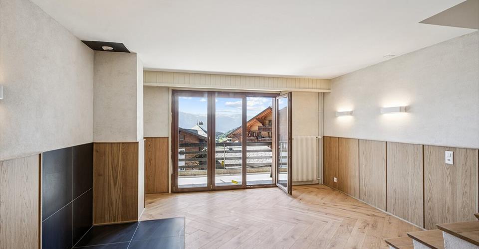 Appartement 3.5 pièces rénové – Villars-sur-Ollon Idéalement situé entre le centre du village et le prestigieux Villars Palace, ce superbe appartement de 3.5 pièces au 2ᵉ étage de la résidence Villars-Soleil séduit par son design contemporain et son atmosphère chaleureuse. Ce bien offre une surface judicieusement agencée, comprenant : Un séjour lumineux donnant accès à un balcon ensoleillé, idéal pour profiter de la vue sur les montagnes environnantes Une cuisine ouverte fonctionnelle Deux chambres garantissant intimité et confort Une salle de bains avec baignoire Une distribution fluide des espaces, pensée pour une occupation principale comme pour une résidence secondaire Des espaces lumineux et modernes Entièrement rénové en 2025 par des architectes, l’appartement offre des finitions haut de gamme : parquet en bois massif, murs en chaux naturelle, cuisine moderne équipée et salle de bain élégante au style alpin. L’espace de vie traversant bénéficie d’une superbe luminosité et s’ouvre sur un balcon ensoleillé avec vue dégagée sur les montagnes. Un cadre de vie pratique et privilégié La distribution intérieure sépare harmonieusement la partie jour de la zone nuit, garantissant intimité et confort. Les chambres, calmes et reposantes, constituent de véritables cocons. Emplacement rare À deux pas des commerces, restaurants, écoles et transports, l’appartement bénéficie d’une situation idéale pour profiter pleinement de la station, été comme hiver. Les remontées mécaniques sont également accessibles à pied, permettant de combiner confort urbain et plaisirs de la montagne. Informations supplémentaires : Energie : Chaufferie à Mazout – distribution par radiateurs Fond de rénovation au 31.12.2024 : CHF 190’087.- Charges PPE + Fonds de rénovation + Chauffage : CHF 434.- Vente aux non résidents étrangers : Oui Vente en résidence secondaire : Oui Attestation Travaux de désamiantage : Disponible