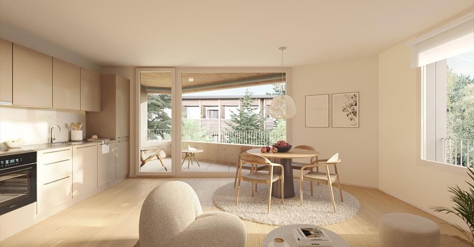 Au coeur d’un quartier résidentiel calme et verdoyant de la commune de Thônex, découvrez la nouvelle promotion « VOIE VERTE 29 », située à deux pas de la Voie Verte, qui dessert directement le centre-ville et à proximité de toutes les commodités (écoles, transports ? Bus, Léman Express ? commerces). Cette nouvelle résidence à taille humaine est construite selon les normes Très Haute Performance Énergétique (THPE) et se compose de 7 appartements allant du 3 au 5 pièces, qui offrent des surfaces pondérées allant de 72 m² à 157 m². Nous vous proposons à la vente un beau 3 pièces en attique, d’une surface PPE pondérée de 71.5m². Il se compose comme suit : Un hall d’entrée avec rangements desservant un séjour / salle à manger / cuisine ouverte permettant d’accéder à la loggia de 9m², une chambre de 13.5 m² avec salle de bains et toilette. Une place de parking en sous-sol sont à acquérir en sus au prix de vente, à CHF 50’000.- l’unité. L’autorisation est en force et ce nouveau projet est vendu “clé en main” pour une livraison prévue , pour une livraison prévue pour l’été 2027. Contactez-nous pour prendre rendez-vous sur la parcelle ou pour recevoir de plus amples informations. Nous vous invitons à aller consulter le site internet dédié au projet : https://voie-verte29.ch/