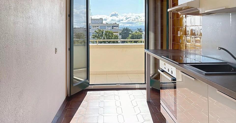 Ce spacieux et lumineux appartement de 3 pièces est situé au sixième étage, d’un immeuble des années septante, sur la commune de Versoix, à proximité du Lac et du Port Choisel et de toutes les commodités : commerces, service et de la halte gare CEVA?. L’appartement propose de généreux et lumineux volumes, pour une surface intérieure de 59.7 m2 et un joli balcon de 8.8 m2, soit une surface pondérée PPE de 64.1 m2. Il comprend un hall d’entrée, un salon / salle-à-manger s’ouvrant sur le balcon, une cuisine agencée donnant également sur le balcon, une chambre à coucher et une salle de douche avec toilettes. Au sous-sol, une cave complète ce bien. Il séduira tous ceux qui recherchent un pied-à-terre ou un bien d’investissement dans cette région où l’offre pour ce type d’objet est très restreinte.