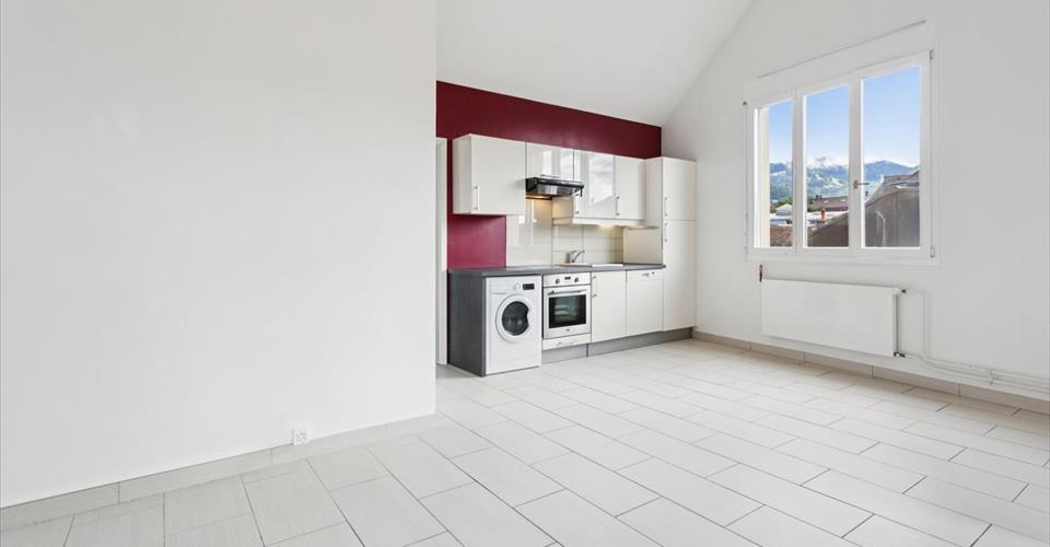 Situé au dernier étage d-un immeuble emblématique, ancienne usine Rinsoz et Ormond, cet appartement allie cachet historique et confort moderne. La rue a récemment été mise en zone piétonne, assurant ainsi à ses habitants une parfaite tranquillité. La constitution de la PPE date de 2005 et l-immeuble a bénéficié d-une rénovation complète entre 2006 et 2011, garantissant des prestations actuelles dans un cadre authentique. L-appartement se compose de 2 petites chambres à coucher, d-une cuisine aménagée avec coin à manger ouverte sur le séjour, ainsi que d-une salle de bain avec baignoire. Depuis les fenêtres et les vélux, la vue donne sur les toits de Vevey et laisse entrevoir le Léman en toile de fond. Le confort est assuré par un chauffage à distance relié au réseau de la Ville de Vevey, et l-appartement dispose de la fibre optique. Les charges de copropriété s-élèvent à environ CHF 600 par trimestre. Une cave d’environ 10 m2 complète ce bien idéal pour une personne seule ou un couple. À noter : l-immeuble ne dispose ni de place de parc ni de balcon. Cet appartement représente une opportunité rare d-acquérir un bien au centre de Vevey, à deux pas du lac, des commerces et des transports publics.