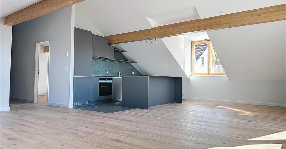 Situation exceptionnelle en plein coeur de la commune d’Anières, dans un quartier calme et résidentiel à deux pas du lac. Il profite de toutes les commodités à proximité telles que les commerces, les cafés/restaurants et les transports publics. Ce beau 3 pièces d’environ 118 m² PPE, dont les finitions de bon standing sauront vous séduire, est situé dans les combles d’une jolie résidence neuve. Il se compose comme suit : – Hall d’entrée avec armoire – Spacieux séjour avec bibliothèque encastrée donnant sur – Cuisine toute équipée avec un îlot central / salle à manger – Chambre à coucher avec dressing sur mesure – Salle de douche – WC séparé – Grand réduit avec branchement pour le lave-linge/sèche-linge Terrasse en attique avec vue imprenable sur le lac Léman ! Une cave ainsi qu’une place de parking intérieure dans l’immeuble complètent les prestations de ce bien. CONDITIONS LOCATIVES Loyer : CHF 3’150.– Charges: CHF 200.– (forfait pour le chauffage et l’eau chaude) Place de parc: CHF 150.– TOTAL: CHF 3’500.– Disponibilité: 01.12.2025