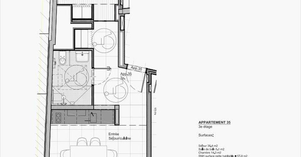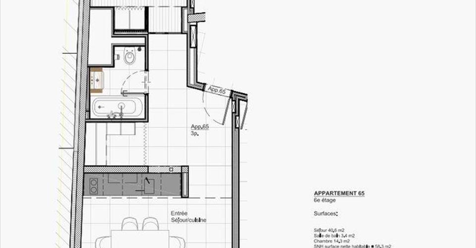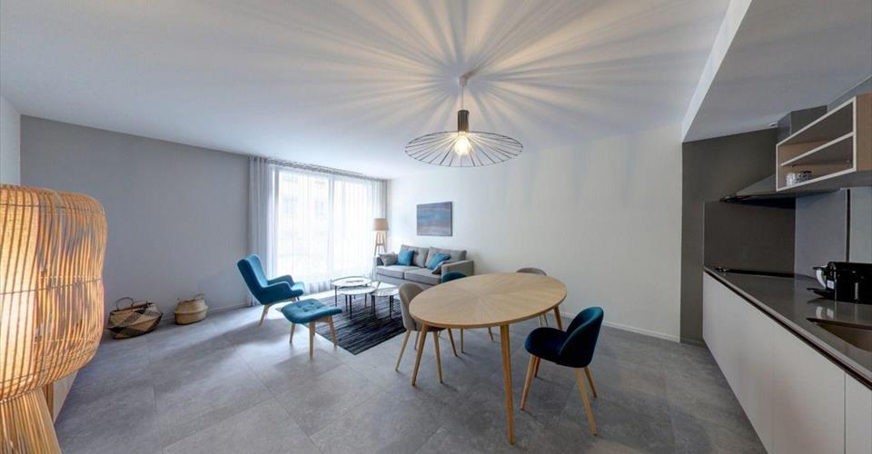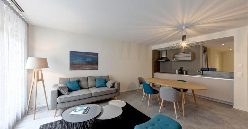 La résidence « PETITE COUR » prend place dans un immeuble neuf situé sur la Rive droite de Genève, à deux pas du lac Léman, de la gare Cornavin et à seulement 10 minutes de l’aéroport International de Genève en transports publics. Son emplacement stratégique vous fera profiter d’un environnement urbain et de l’ensemble des commodités du centre-ville. « PETITE COUR » vous propose d’élégants appartements entièrement équipés et décorés avec goût, dans un style moderne alliant confort et technologie. La Résidence offre des espaces idéalement pensés afin de s’accommoder au mieux au style de vie de ses occupants. Distribué sur 8 étages, l’immeuble aux lignes résolument contemporaines propose au total 31 logements meublés de tailles et de configurations différentes allant du simple studio au 3 pièces, dès 26.60m² à 67.70m² habitables. – LOT N°25 : 2ème étage 56.40m² terrasse de 11.50m² CHF 3’450.- charges comprises – LOT N°35 : 3ème étage 57.80m² CHF 3’300.- charges comprises – LOT N°45 : 4ème étage 58.30m² CHF 3’300.- charges comprises – LOT N°55 : 5ème étage 58.10m² CHF 3’300.- charges comprises – LOT N°65 : 6ème étage 58.30m² CHF 3’300.- charges comprises Ces 3 pièces d’une surface habitable dès 56.40m² ont été élégamment décoré dans une ambiance « Rivage », teinté de ton bleuté et gris. Ils disposent d’une cuisine ouverte sur un séjour / salle à manger, d’une chambre avec penderie et d’une salle de douche à l’italienne avec sanitaires. EQUIPEMENTS & SERVICES Les appartements bénéficient d’équipements de haute qualité. Vous trouverez dans chacun des logements meublés, les équipements et prestations suivants: – TV à écran plat – Accès internet – Coffre-fort – Set de vaisselle complet pour 2 ou 4 personnes – Divers ustensiles de cuisine – Four à micro-ondes – Planche et fer à repasser – Accès aux deux buanderies de la résidence avec lave-linge et sèche-linge – Nettoyage hebdomadaire – Immeuble sécurisé Pour de plus amples informations, rendez-vous sur le site internet : https://www.residencepetitecour.com/