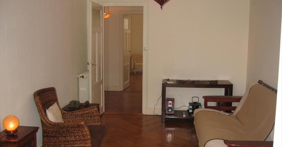 Logement de trois pièces au 1er étage avec une cuisine, une chambre à coucher et une salle de bains avec WC. L’appartement peut être loué meublé à un loyer mensuel de CHF 2’300.00 + les acomptes de charges.