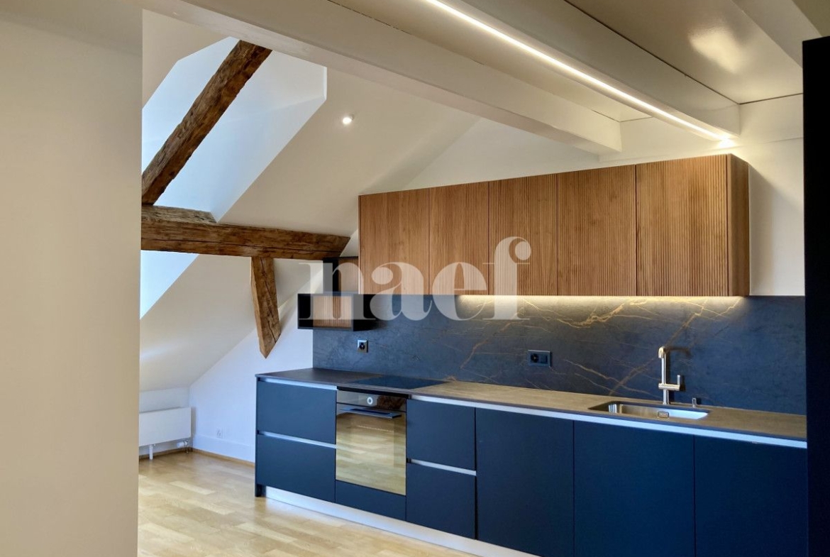 Dans un immeuble datant du début du 20ème siècle, nous proposons un très bel appartement d’environ 90,3 m², au 3ème étage. L’immeuble est accessible aussi bien par le Bourg-de-Four 8 (disposant d’un ascenseur) que par la rue Guillaume-Farel 8.