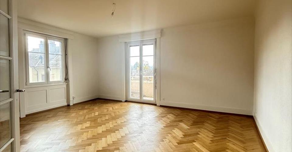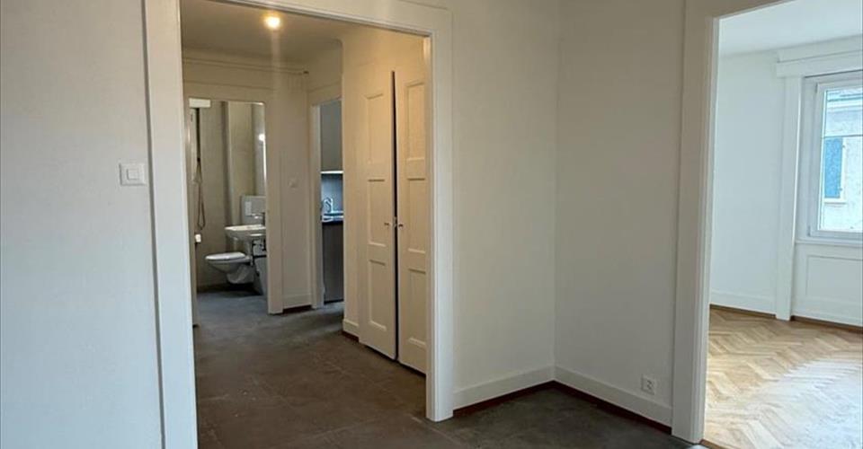 Chaleureux appartement rénové de 3.5 pièces d’env. 85m2 est situé au 2ème étage d’un immeuble dans un quartier calme, bénéficiant de toutes les commodités et des transports à proximité. Ce dernier se compose comme suit : – D’un spacieux hall d’entrée – D’une cuisine entièrement agencée – D’un séjour – D’un balcon – De 2 chambres – D’une salle de bain/WC Une cave est mise à bien plaire. Loyer net : CHF 1’950.00 Acomptes charges : CHF 225.00 Total mensuel : CHF 2’175.00 En cas d’intérêt, une visite groupée est organisée le mardi 28 octobre 2025 à 16h45. A noter qu’aucune demande par courriel ne sera traitée. Misa Management immobilier SA