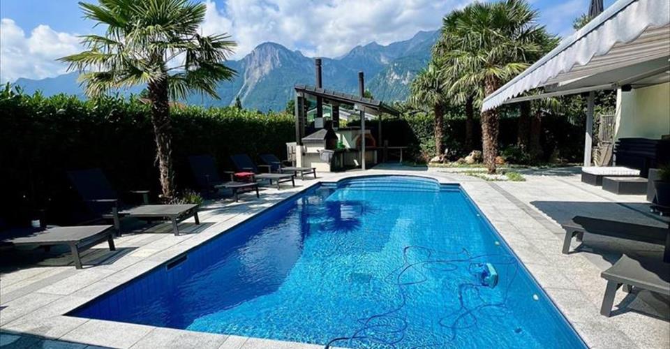 Appartement de 3 pièces dans un petit immeuble en copropriété avec piscine & cuisine d’été commune. Le logement se compose d’un grand salon avec poêle et cuisine ouverte entièrement agencée, deux chambres dont une avec armoires, salle-de-douche/WC avec fenêtre et machine à laver, couloir avec armoires ainsi qu’une terrasse. Une place de parc couverte et une place non couverte complètent ce bien et sont incluses dans le prix.