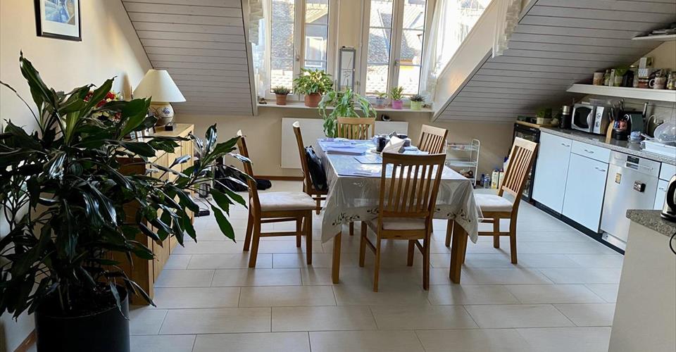 Cet appartement sous combles d’environ 100 m2 saura vous séduire tant par son emplacement idéal que par sa spacieuse surface. Il se décline ainsi: – Cuisine agencée ouverte sur le salon; – Deux chambres à coucher; – Salle-de-bains/WC; – Mezzanine. L’immeuble ne comporte pas de cave avec les appartements. Des travaux de rafraichissement sont prévus avant la relocation du logement. Disponibilité: 15.11.2025 Loyer net : CHF 2’720.00 Acompte de charges : CHF 150.00 En cas d’intérêt, n’hésitez pas à nous contacter.