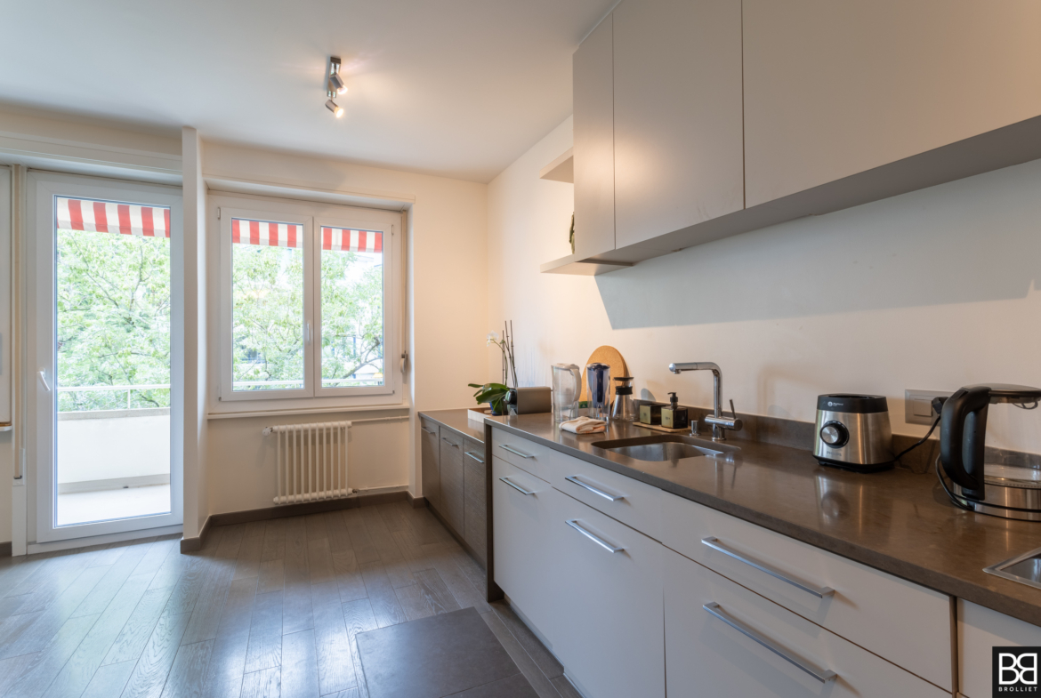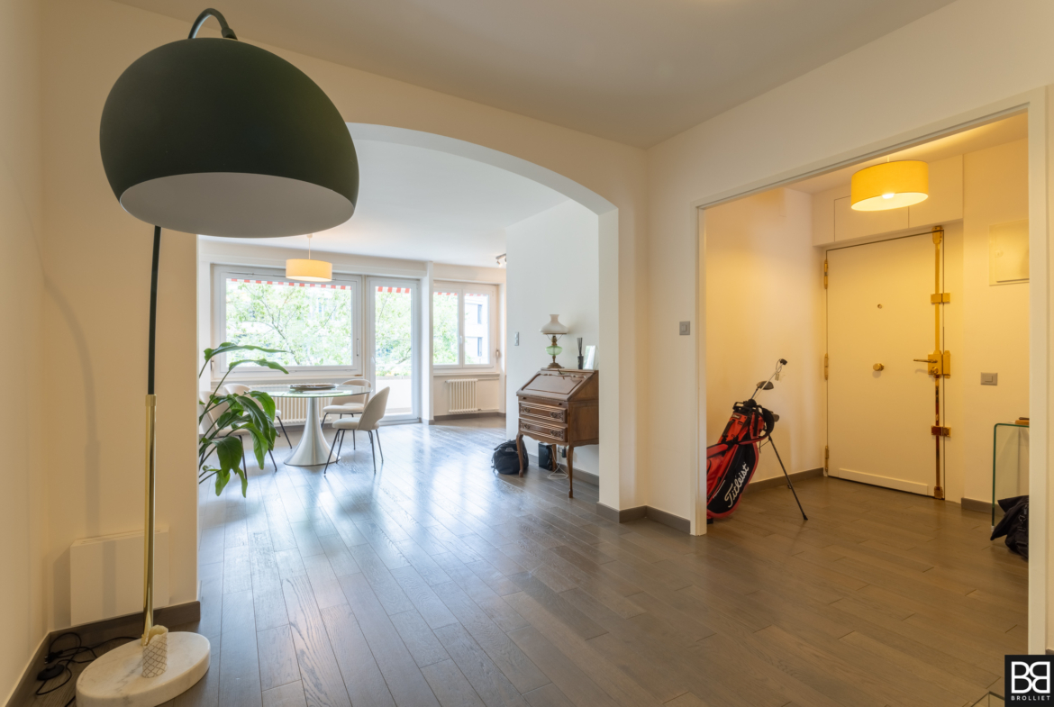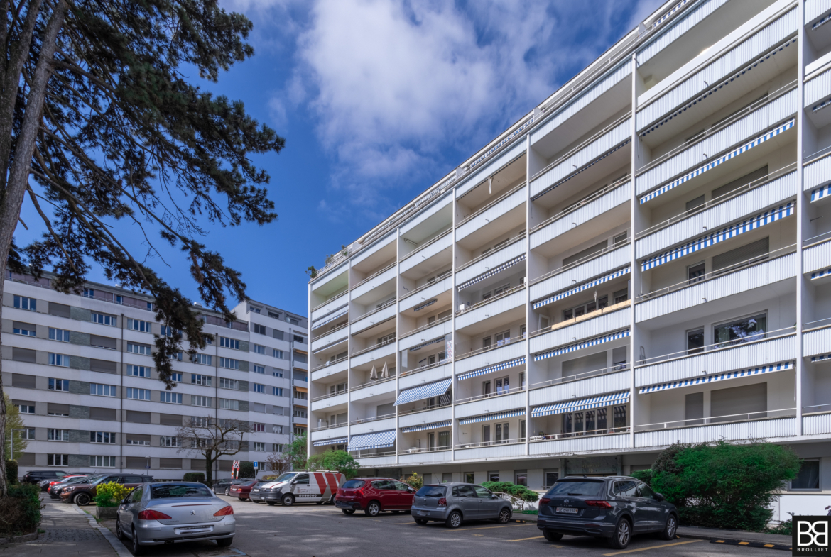 Dans une ruelle calme et dans un bel immeuble construit fin des années 50, cet appartement de 4 pièces (94.6 m² PPE + 16.5 m² PPE de balcons) situé au 5ème étage offre : hall d’entrée, cuisine équipée ouverte sur le salon-salle à manger avec accès au premier balcon, toilettes visiteurs avec lavabo, deux chambres à coucher avec accès au second balcon et une salle de bain avec toilettes.