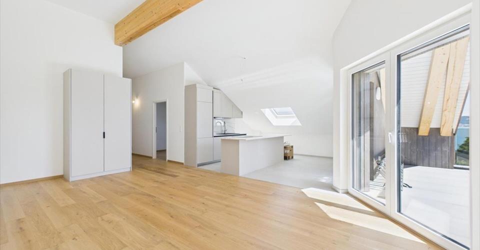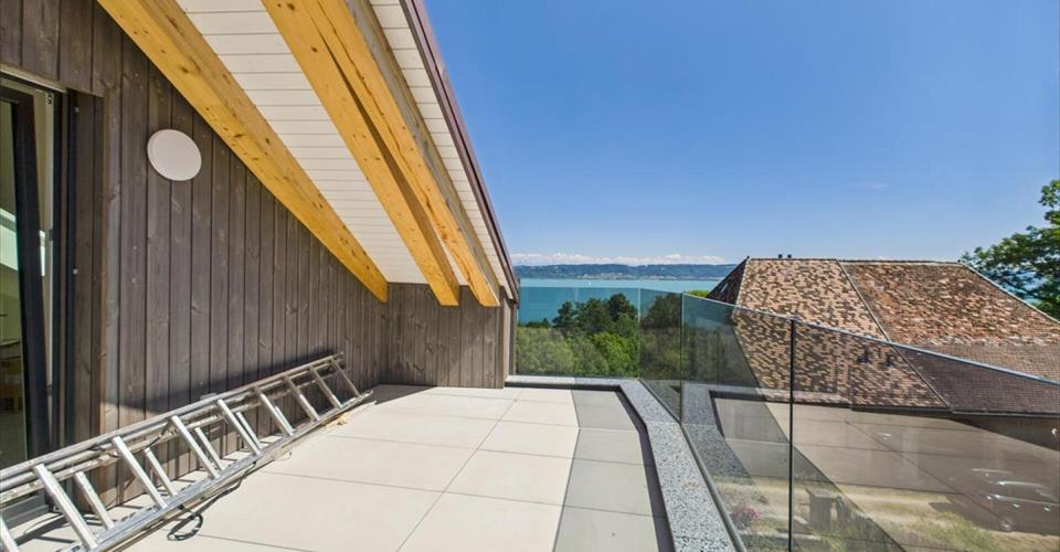 Découvrez un appartement neuf de 4.5 pces, situé au dernier étage d’une petite PPE de 6 appartements avec ascenseur. Cet appartement lumineux, aux équipements modernes et de qualité, vous séduiront. Son balcon, avec sa jolie vue sur le lac vous fera profiter de moments privilégiés. Composition : Séjour avec accès balcon Cuisine ouverte avec bar 2 chambres Chambre parentale avec salle d’eau (douche, lavabo, wc) Salle d’eau avec baignoire, lavabo, wc Buanderie Galetas Cave 2 places de parc extérieures en sus CHF. 10’000.–/la place Prix de vente : CHF 820 000.- Pl. de parc extérieures : CHF 10 000.-/place Disponible de suite ou à convenir.