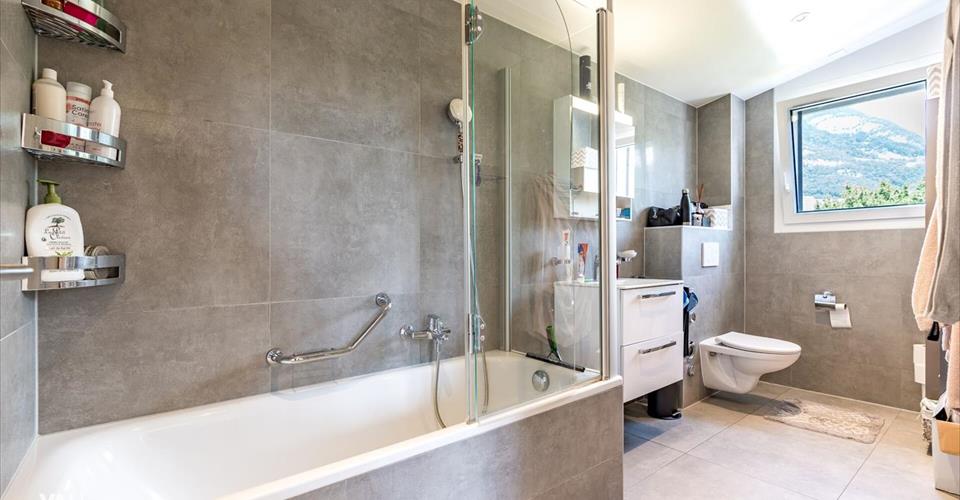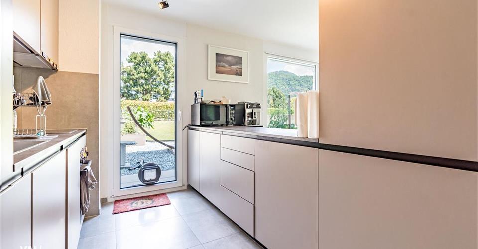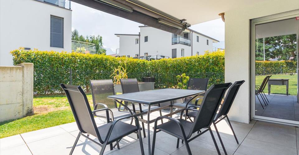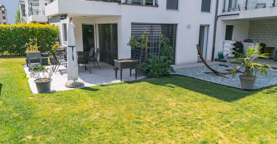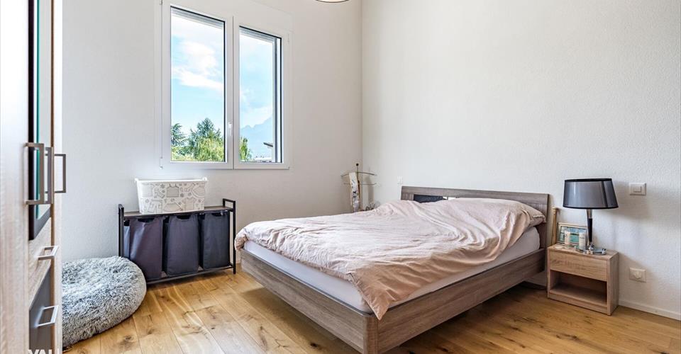 Dans un quartier paisible d’Aigle, ce magnifique appartement en duplex de 4.5 pièces vous séduira par ses volumes généreux, sa luminosité et son extérieur exceptionnel. Niché au rez-de-chaussée d’un immeuble récent construit en 2020, il offre un cadre de vie idéal pour une famille ou pour toute personne à la recherche d’un lieu de vie confortable, moderne et proche des commodités. Dès l’entrée, vous découvrez une vaste pièce de vie baignée de lumière naturelle, comprenant un salon, une salle à manger et une cuisine ouverte. Cet espace convivial, parfaitement agencé, bénéficie d’un accès direct à une grande terrasse et à un jardin privatif d’environ 250 m², un véritable prolongement du logement vers l’extérieur, parfait pour recevoir, se détendre ou profiter des beaux jours en toute intimité. Le jardin est complété par un espace de rangement extérieur fermé de 14 m², pratique pour y stocker vélos, équipements de jardin ou affaires saisonnières. Toujours au rez-de-chaussée, une chambre en suite apporte un confort de vie appréciable au quotidien, notamment pour des invités, un bureau ou une chambre parentale. Un WC visiteurs vient compléter intelligemment ce niveau. À l’étage, une armoire encastrée intégrée dans le dégagement facilite le rangement sans empiéter sur l’espace de vie. Deux chambres de belle taille vous accueillent, toutes deux sublimées par une magnifique hauteur sous toit et de superbes poutres apparentes, qui confèrent beaucoup de cachet à l’ensemble. La salle de bain, spacieuse et fonctionnelle, est équipée d’une baignoire, d’un WC et d’une colonne de lavage, pensée pour répondre aux besoins d’une vie de famille. En complément, une grande cave au sous-sol offre un bel espace de stockage supplémentaire. Deux places de parc complètent parfaitement ce bien. Ce bien conjugue charme, modernité et fonctionnalité dans un environnement calme et agréable, à quelques minutes des écoles, des commerces et des transports. Un bien rare à Aigle, qui mérite toute votre attention.
