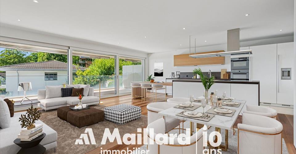 Vue lac et calme absolu pour ce bel apaprtement contemporain Une exclusivité Maillard Immobilier Au coeur du Lavaux, Grandvaux profite d’une renommée exceptionnelle de par sa situation très prisée ainsi que pour son cadre résidentiel de grande qualité. La résidence Belvedère le Quatro érigée en 2017 et labellisée Minergie est composée de 4 logements en PPE offrant ainsi un cadre intime et exclusif. Ce superbe appartement offre une surface de vie de 113 m² prolongée par une terrasse de 25 m². Sa position au rez-supérieur étage lui procure un ensoleillement optimal et offre une belle vue le sur lac, les montagnes et le Jura. Il s’agit d’un bien de qualité qui séduira les personnes à la recherche de confort et de raffinement. Un soin particulier a été apporté au choix des finitions avec des matériaux de haute qualité en adéquation avec les standards de vie contemporaine et les tendances actuelles en matière d’aménagement intérieur. Il s’agit tout simplement d’un appartement élégant dont la luminosité n’a d’égal que la vue. Une opportunité à ne pas manquer. Appartement : CHF 1’495’000.- Deux places de parc intérieures : CHF 80’000.- Prix de vente total : CHF 1’575’000.- Aline Jaquier
